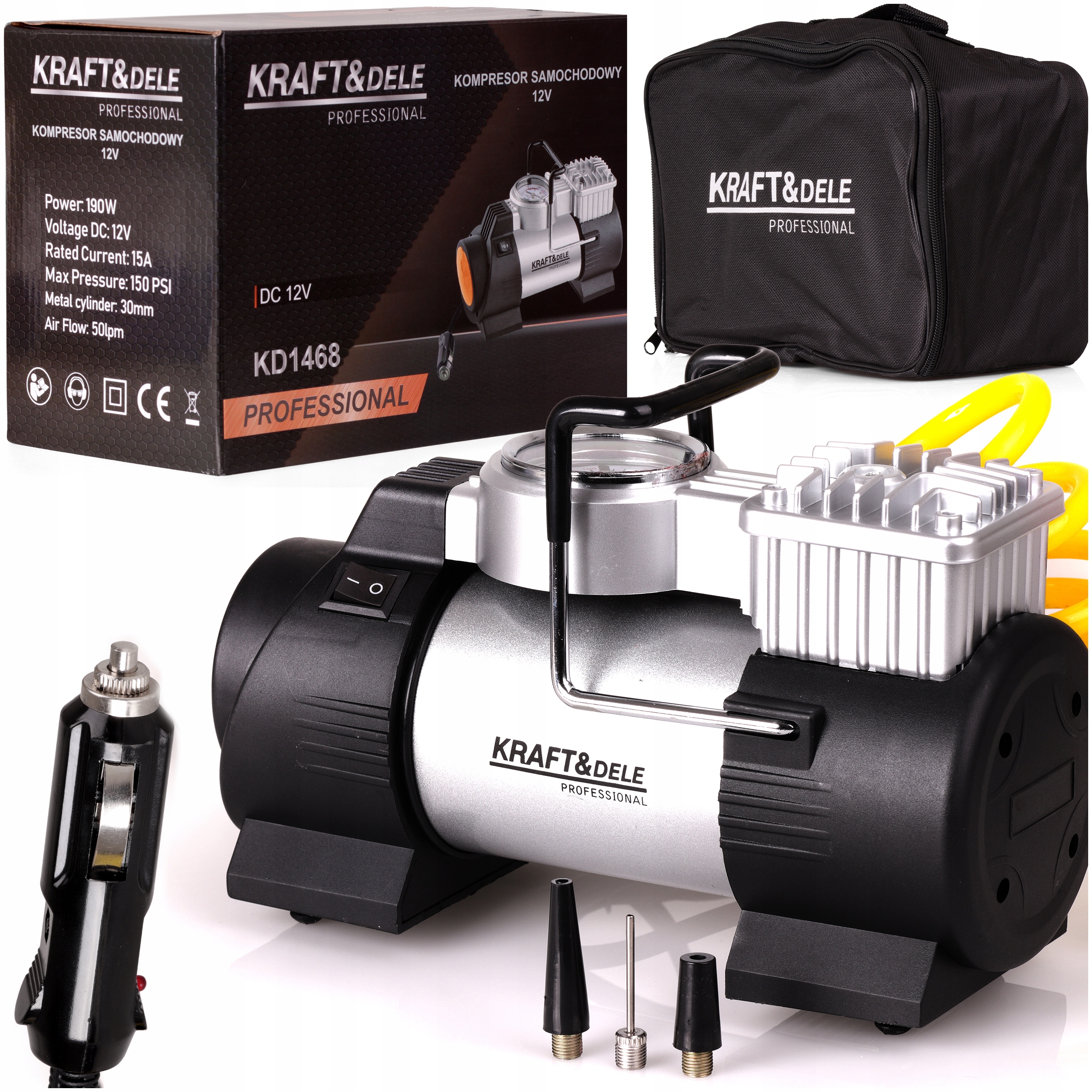 АВТОМОБІЛЬНИЙ КОМПРЕСОР 12V / 230V КОМПРЕСОР ЗАПАЛИЧКА КЕЙС МАНОМЕТРА 190W