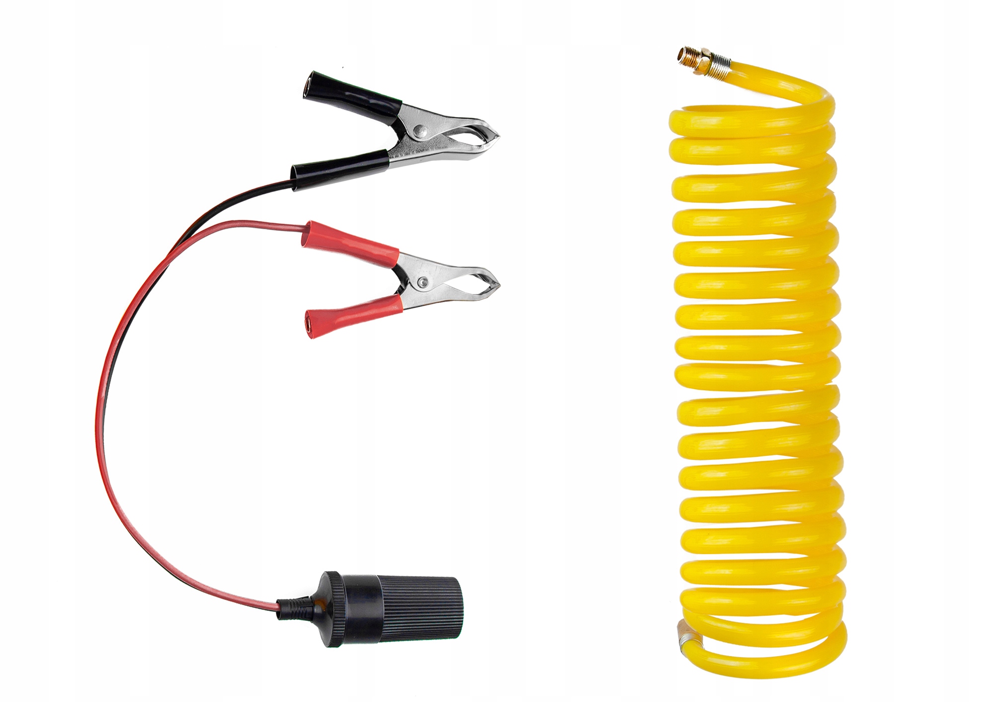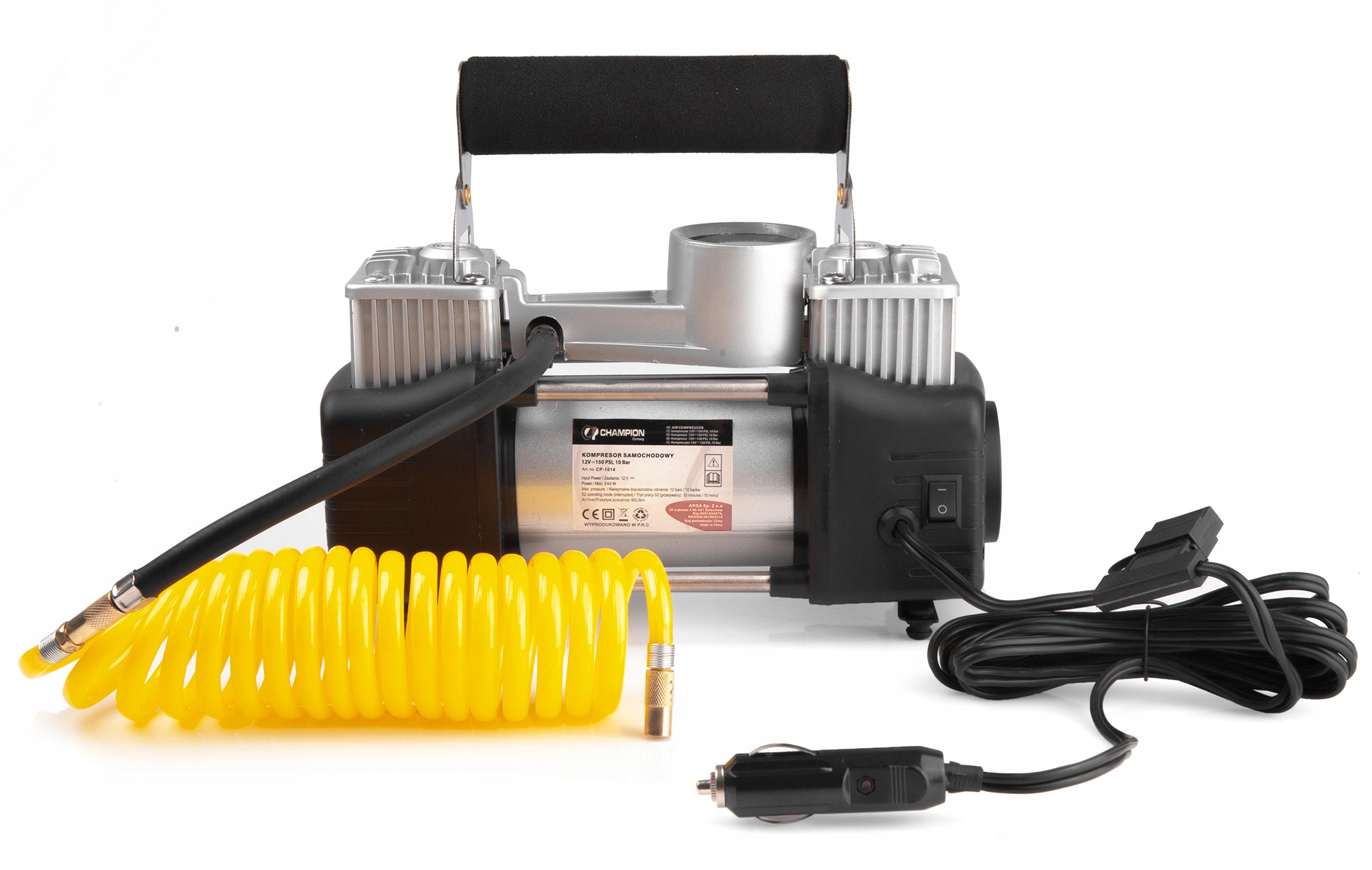 Эффективный двухпоршневой компрессор 12 В — полезное устройство во многих ситуациях. Компрессор питается от сети 12 В и может питаться напрямую от аккумулятора благодаря входящему в комплект кабелю, оснащенному зажимами. Изготовлен из металла, имеет удобную ручку для переноски и резиновые ножки, обеспечивающие устойчивость во время работы. Также имеется переключатель включения/выключения и небольшой отсек для хранения других насадок. В комплект входит удлинительныйнапорный шланг со встроенным манометром, 3 насадки для надувания, например, мячей и.