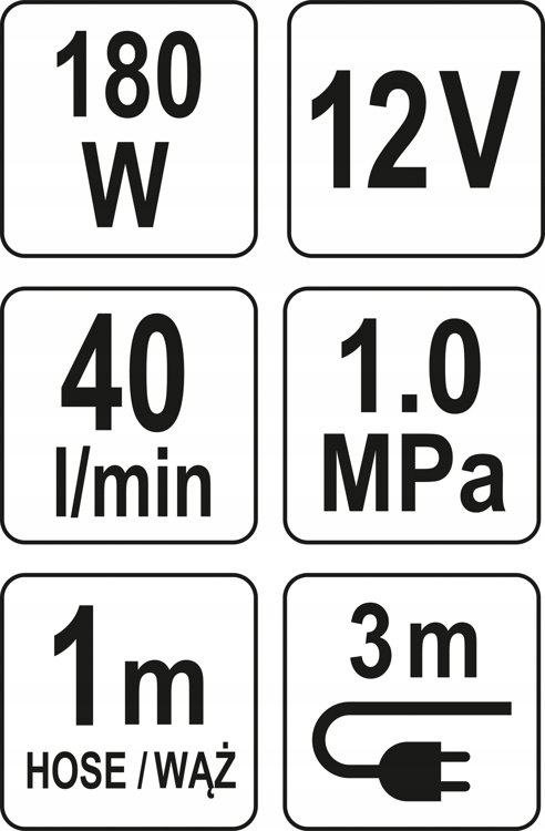АВТОМОБИЛЬНЫЙ КОМПРЕССОР YATO СО СВЕТОДИОДНОЙ ЛАМПОЙ, 12 В 180 Вт