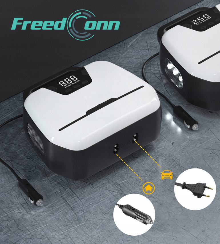 АВТОМОБИЛЬНЫЙ КОМПРЕССОР 12/230В FreedConn 1866 С ФОНАРЕМ И ЖК-ДИСПЛЕЕМ + АКСЕССУАРЫ