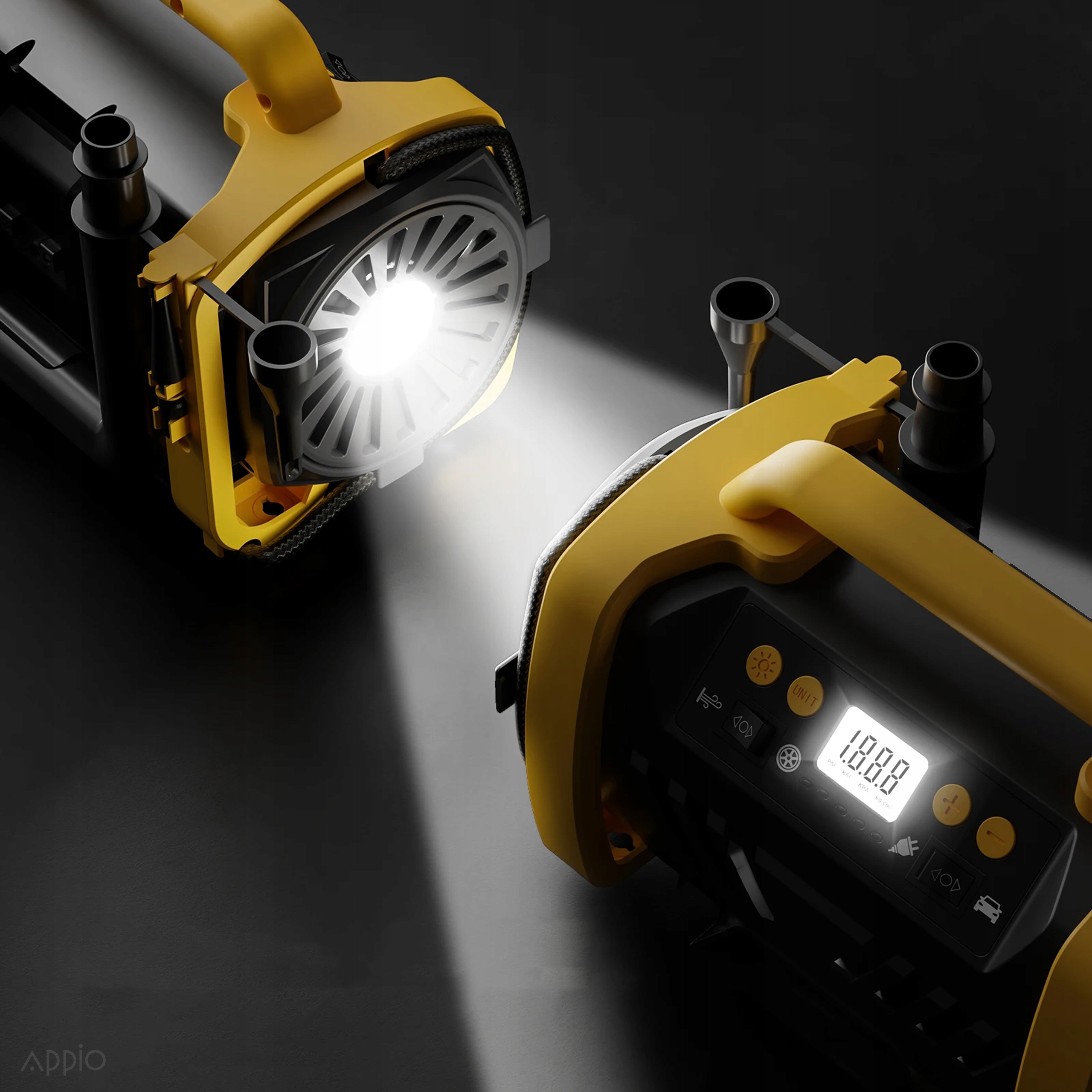 Фонарик, расположенный сбоку компрессора, идеально подходит для накачивания шин в темноте.