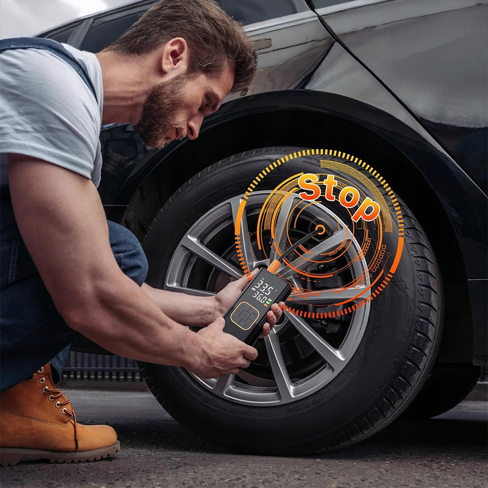 Наш беспроводной насос для подкачки шин оснащен высокоточным датчиком и ЖК-дисплеем, который может отображать текущее давление и заданное давление в режиме реального времени, а также имеет функцию памяти. Этот цифровой автомобильный насос для накачивания шин также поддерживает переключение между четырьмя единицами измерения (PSI, BAR, KPA, кг/см²) с точностью ±0,5 PSI, что обеспечивает точное измерение давления в шинах и повышает безопасность вождения.