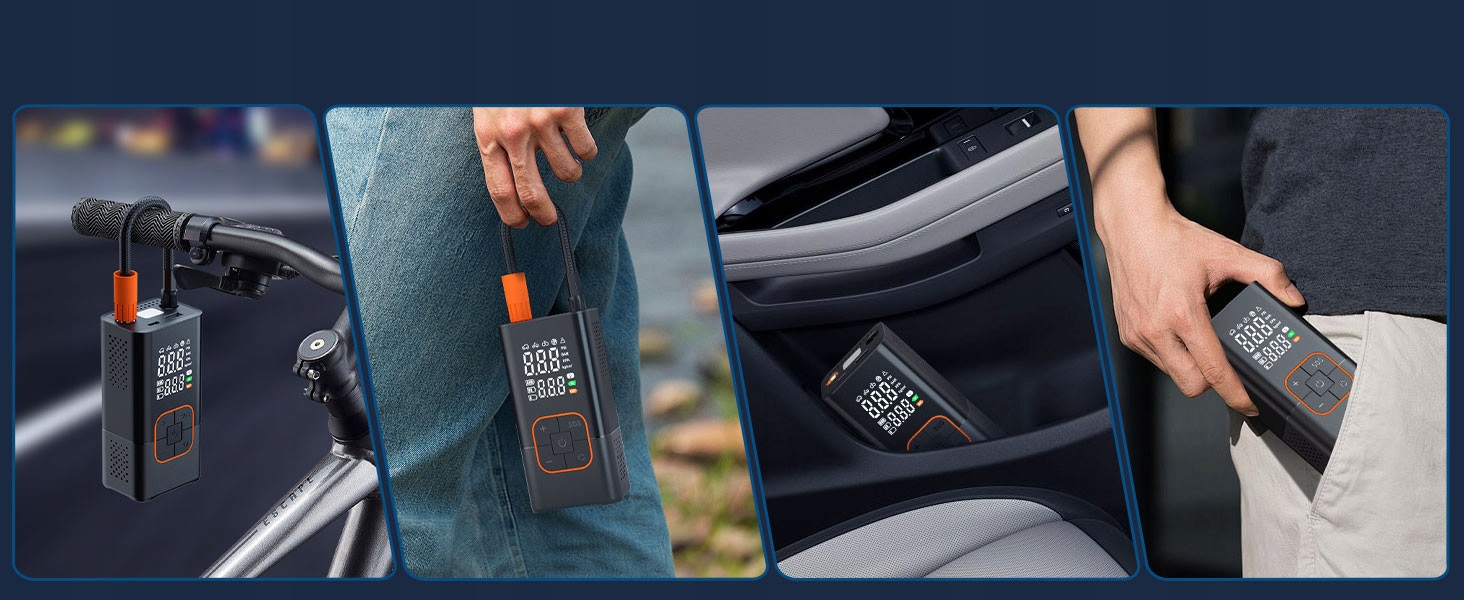 Этот воздушный компрессор для накачки шин имеет встроенные 5 режимов накачивания и 4 различных адаптера насадок для удовлетворения различных потребностей в накачивании (например, велосипедов, мотоциклов, автомобилей, внедорожников, мячей, SUP, каяков, воздушных шаров). Кроме того, вы можете свободно переключаться между 4 единицами измерения (PSI, BAR, KPA, кг/см²).
