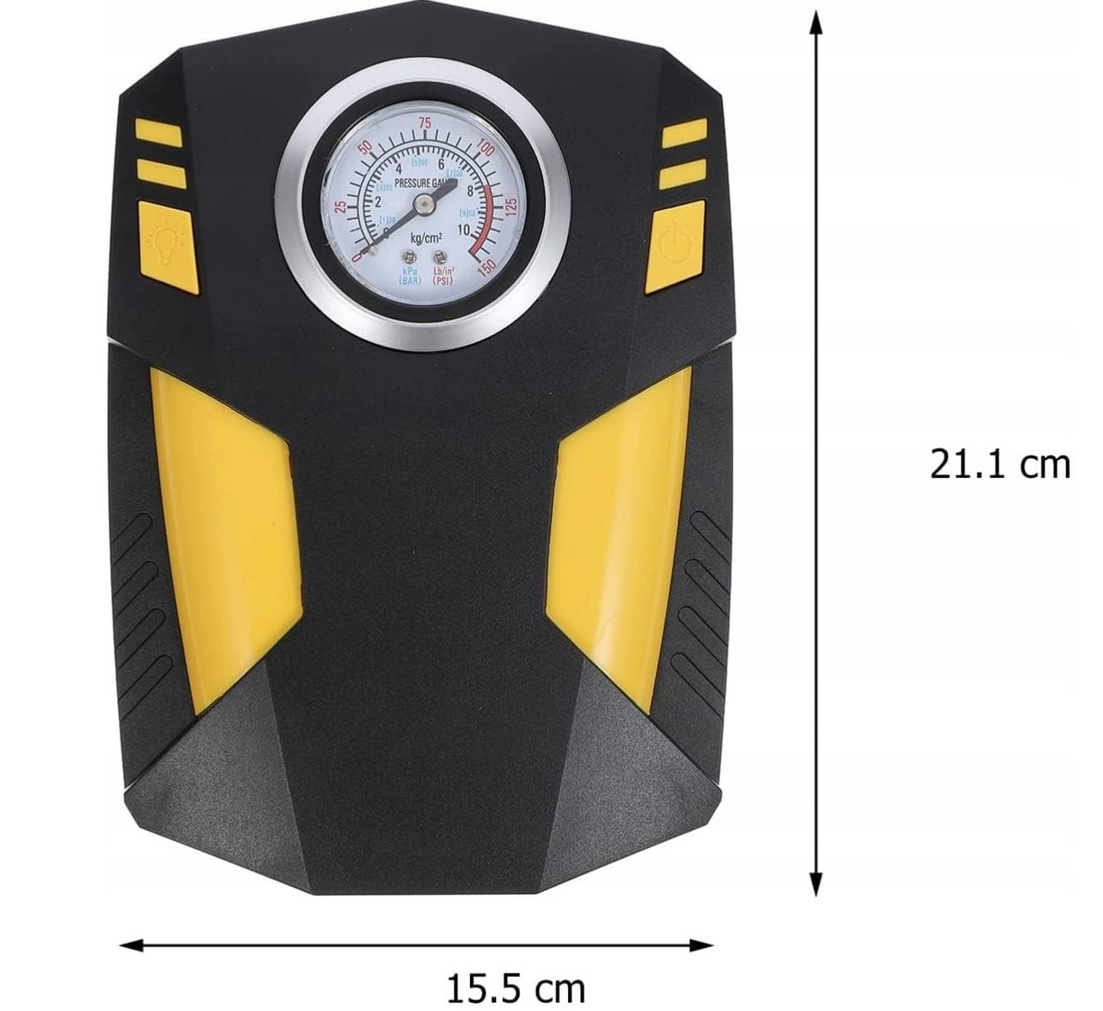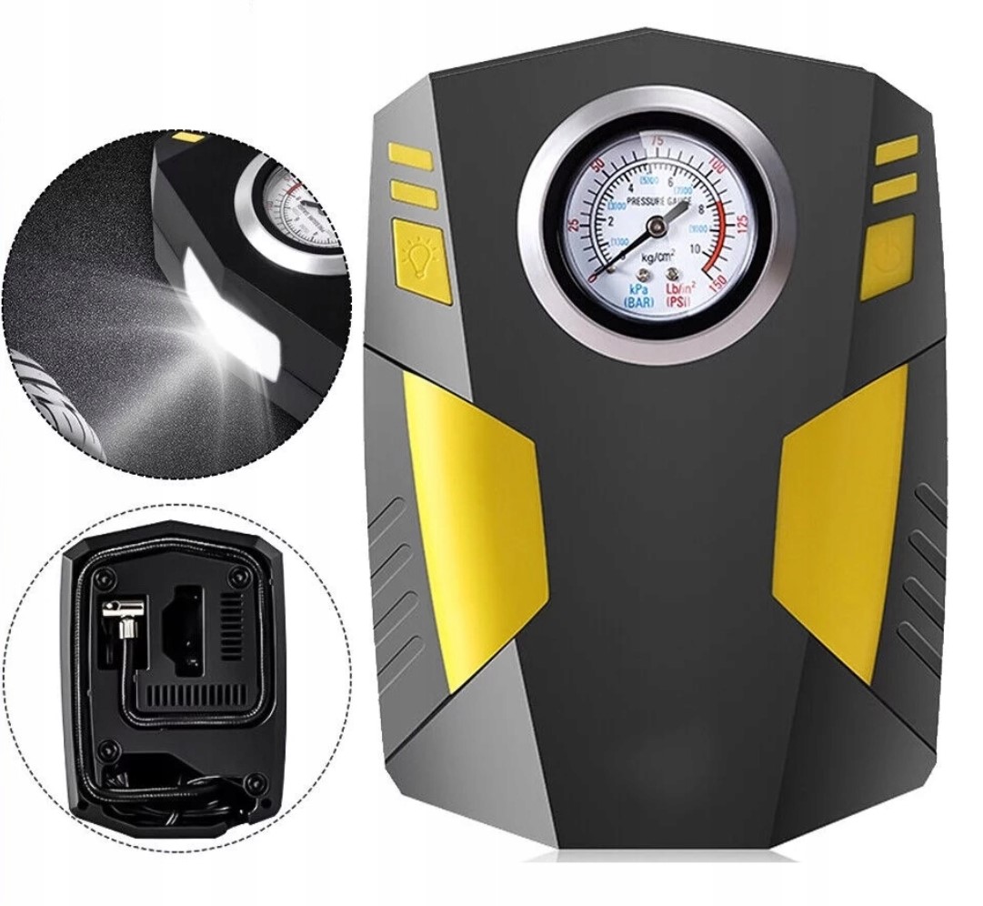 Наш автомобильный компрессор на 12 В — это устройство, которое является воплощением надежности. Этот компрессор, созданный для водителей, которым требуется максимальная производительность, справится даже с самыми требовательными задачами. Оснащенный мощным двигателем мощностью 100 Вт, он способен создавать давление до 150 PSI (10 бар), что гарантирует быструю и эффективную накачку шин автомобилей и мотоциклов, а также спортивного и развлекательного оборудования.