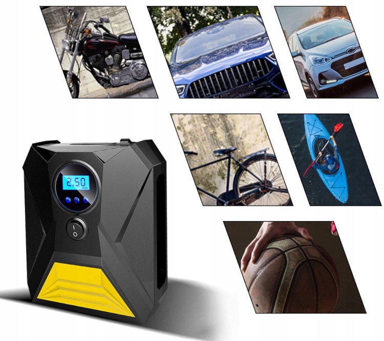 Компактный и мощный компрессор с высоким КПД. Благодаря высокой мощности мы можем за очень короткое время надуть колеса автомобиля, мотоцикла, а также всевозможные матрасы, понтоны, мячи и другой спортивный инвентарь. Устройство питается от электричества от прикуривателя автомобиля.