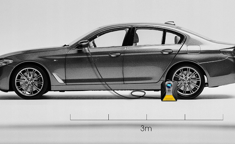 Сетевой шнур длиной 2,8м и напорный шланг длиной 0,6м доставляют хлопоты -бесплатное накачивание как передних, так и задних и задних колес автомобиля.