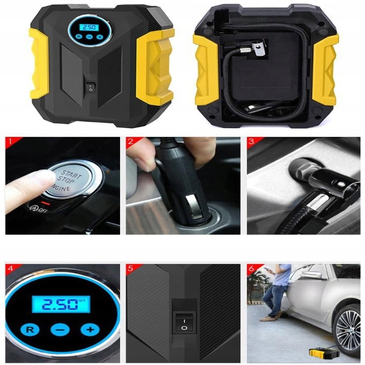 - Автомобильный компрессор с ЖК-светодиодом