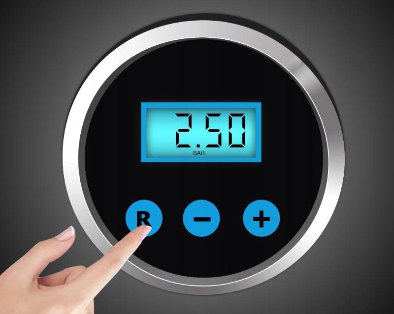 - Электронный манометр со светодиодным дисплеем — отключает компрессор при достижении заданного давления.