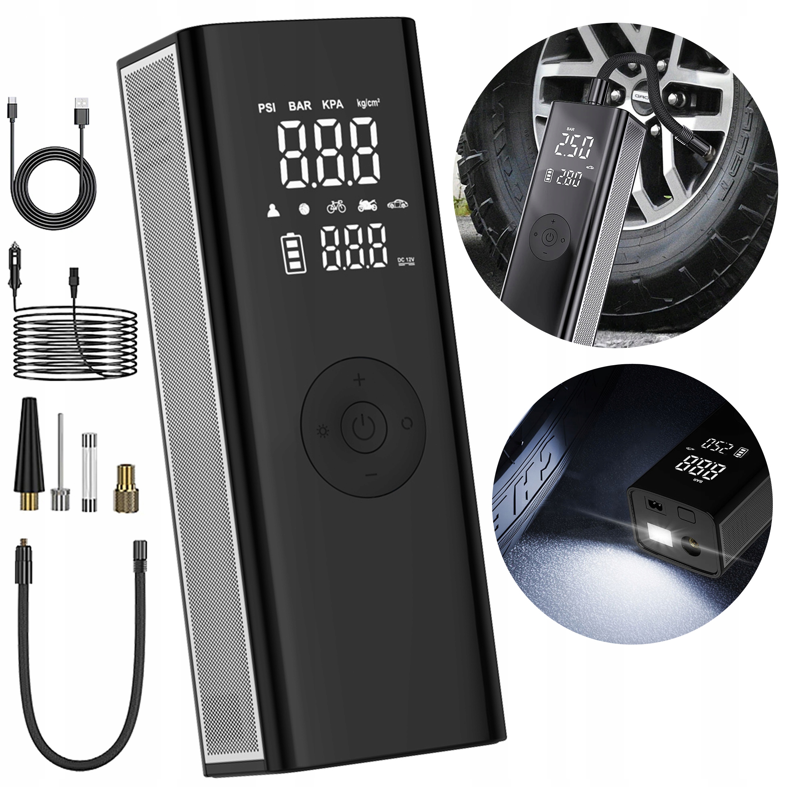 ✔️ БЕСПРОВОДНОЙ АВТОМОБИЛЬНЫЙ КОМПРЕССОР (ВЕЛОСИПЕД)/НАСОС/КОМПРЕССОР >25л/мин С ФОНАРЕМ, ЖК-ДИСПЛЕЕМ, НАБОРОМ АКСЕССУАРОВ И ВСТРОЕННОЙ ОГРОМНОЙ АККУМУЛЯТОРНОЙ БАТАРЕЕЙ 7800МАч (3,7В)