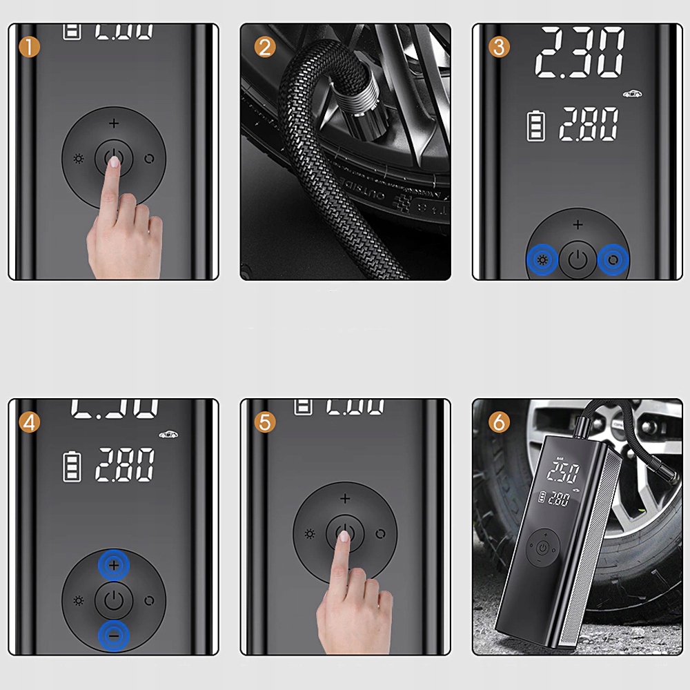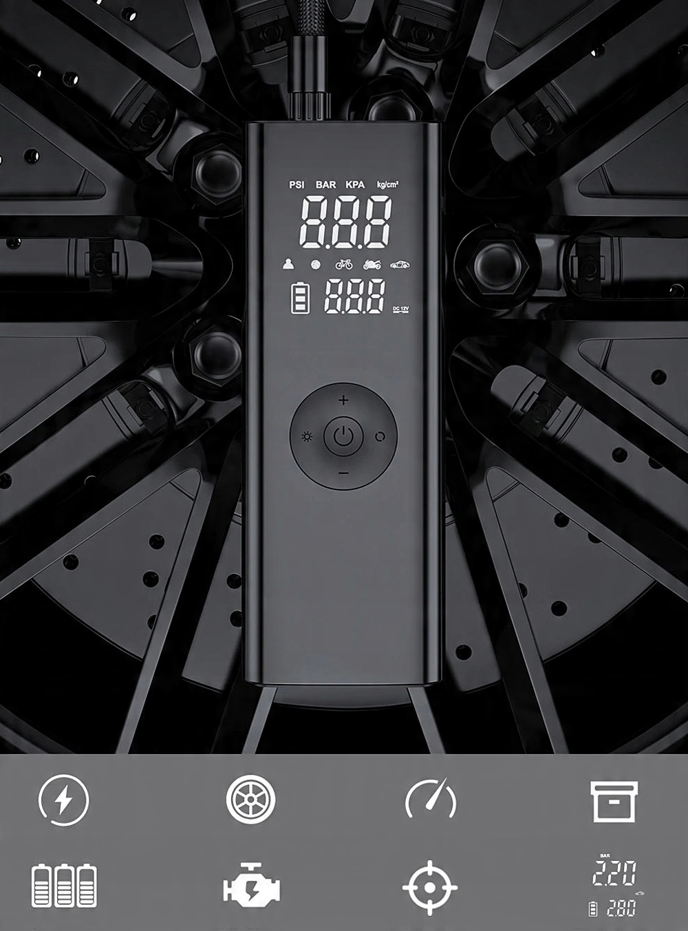 - Беспроводной светодиодный ЖК-компрессор со встроенным аккумулятором, модель T2250.
