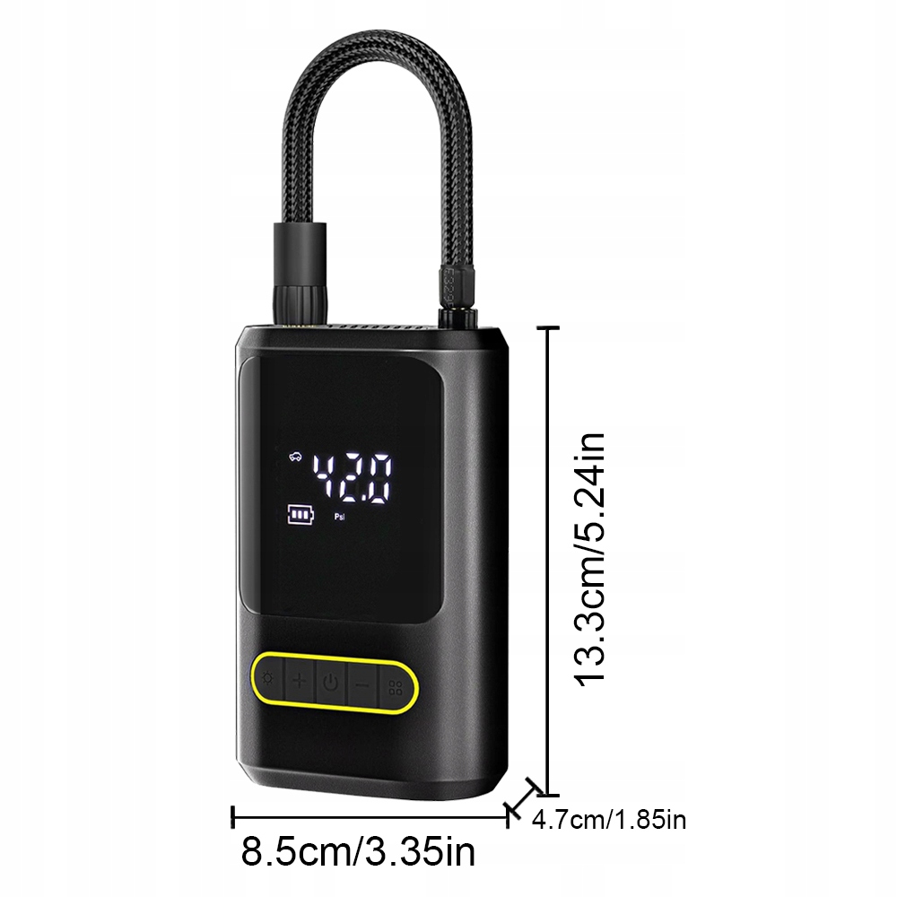 - 🔹 Оснащен Благодаря большому и четкому ЖК-дисплею вы можете легко контролировать давление и уровень заряда аккумулятора.