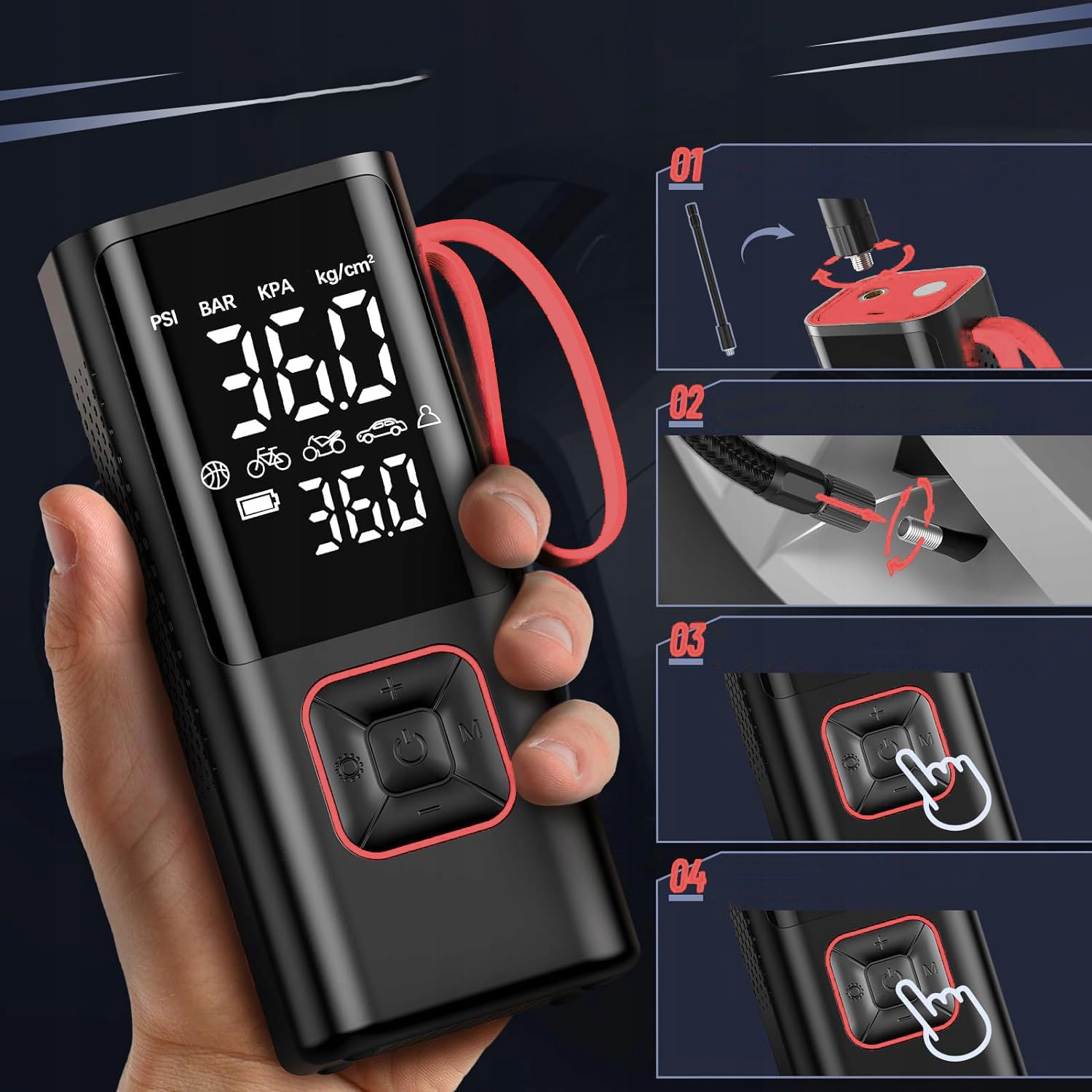 - 3 MHA, Możliwoś naładowania do 3 opon po pełnym naładowaniu. Устройство проще в использовании и имеет мобильную функцию мощности, так что вы можете путешествовать без беспокойства, дизайн będzie idefiny wyborem na prezent. który może wyświetlać wartość ciśnienia w czasie rzeczywistym.