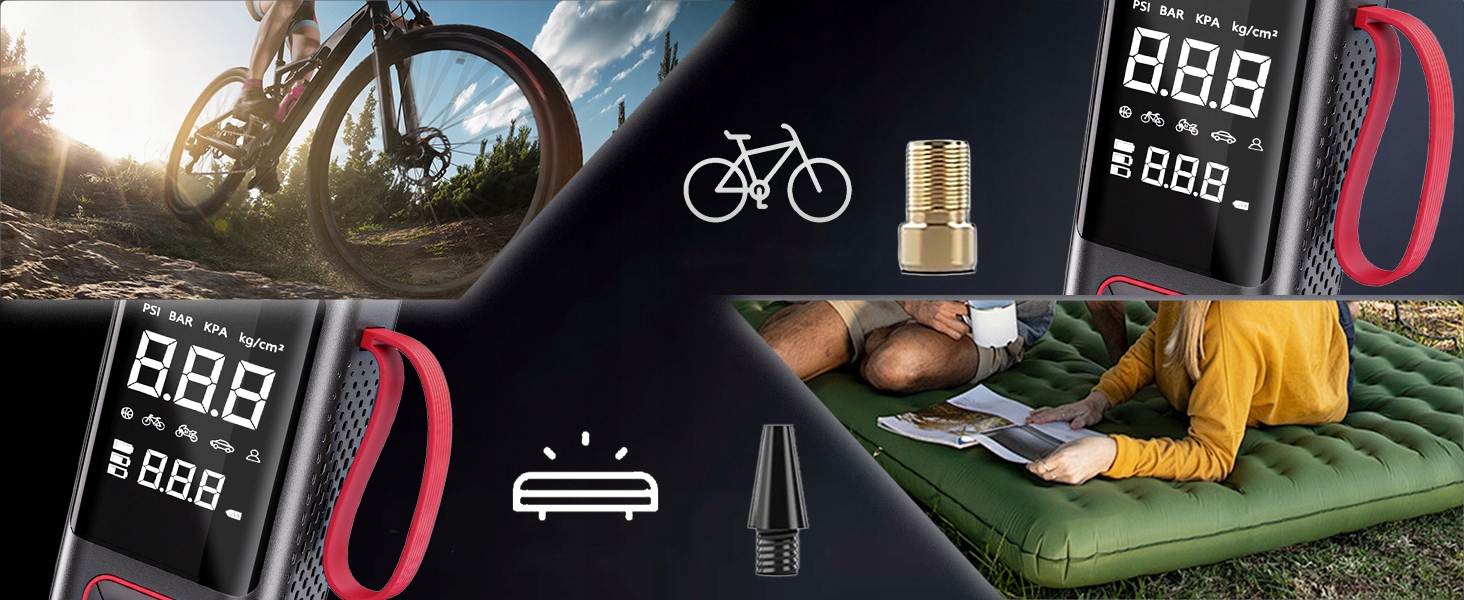 - 🚲【 Точный двойной ЖК -дисплей 】🚲: Этот портативный воздушный насос оснащен высококачественным цифровым датчиком, который может немедленно отображать давление в режиме реального времени и предварительное давление на двойном LCD -дисплее. Максимальное удобство благодаря легкому переключению между четырьмя единицами (PSI, KPA, BAR и кг/см²). Всегда получайте точное, идеальное давление в шинах - больше не догадок и чрезмерной перекачки. Скажите себе безопасно во время каждой поездки благодаря этому простому -использовать насосное устройство. Портативный насос для автомобильных шин