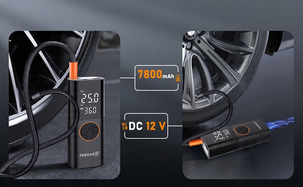 - Feegar Expert идеально подходит для: поездки на велосипеде, кемпинг, поход в бассейн, поездка в отпуск, прогулка в горы, но это также отлично подойдет дом. Большой аккумулятор емкостью 7800 мАч и быстрая зарядка обеспечивают длительное и безопасное использование этого удивительного компрессора.