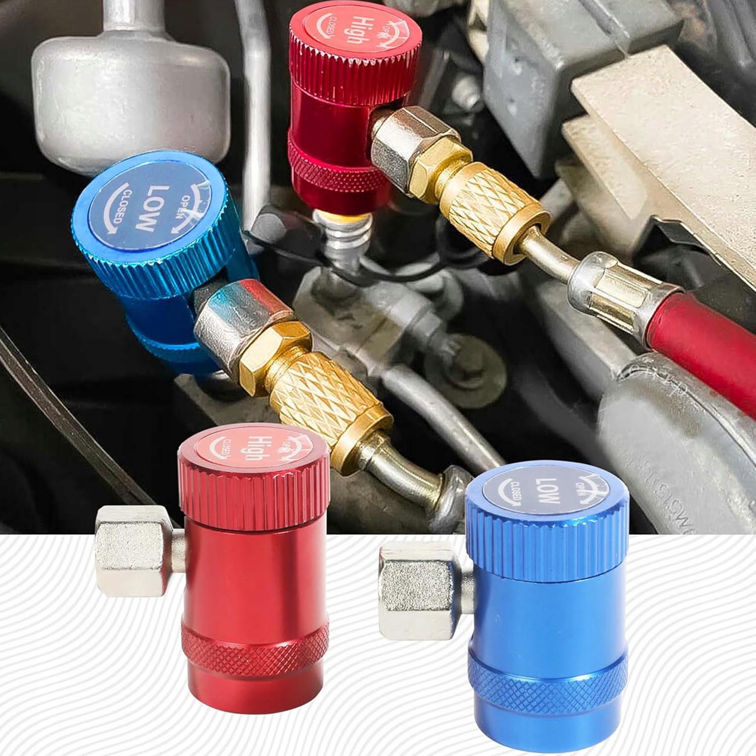 Высокий и низкий быстрый дидискорирующий адаптеры подходят для хладагентов R1234YF, манометра AC, диагностического контроля, восстановления и эвакуации. 📊❄
