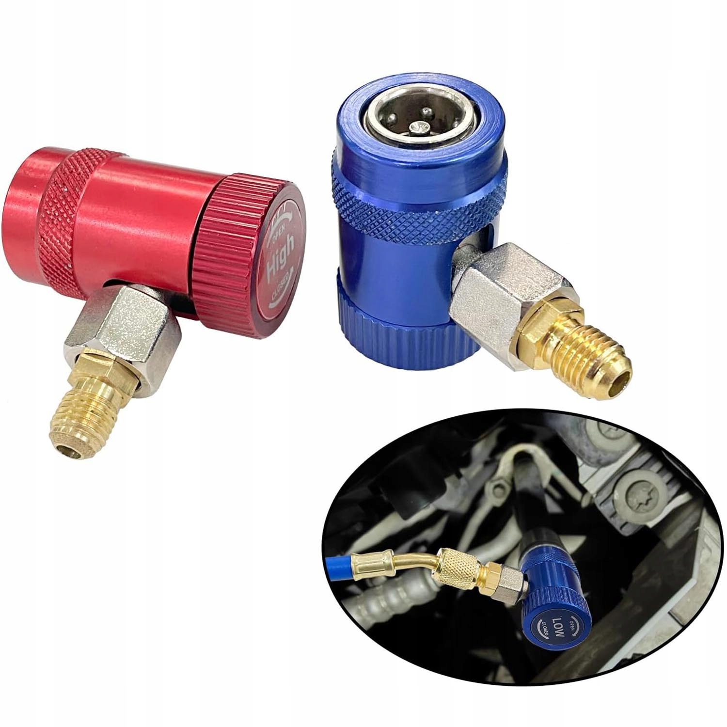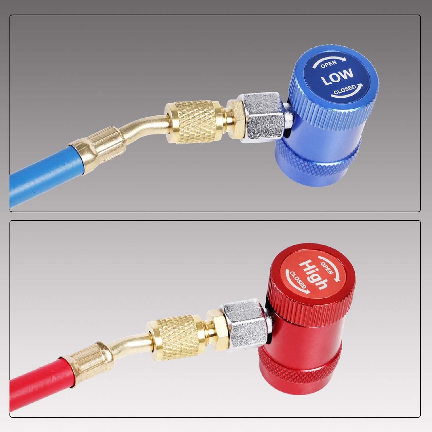 Латунный металлический конструкция обеспечивает быструю и легкую установку, красная для высокого давления, синий для низкого давления, содержит 2 шт.
