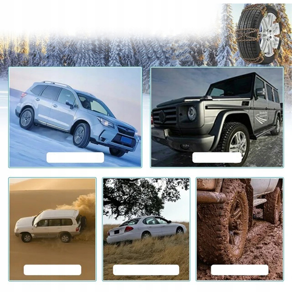 ❄ Защита на снежных дорогах: Эти цепочки шин были разработаны для эффективного разрыва льда и предотвращения скольжения по снежным дорогам, повышая безопасность и производительность. Подходят для широкого спектра сложных дорожных условий, таких как слякочная, влажная и ледяная поверхность.