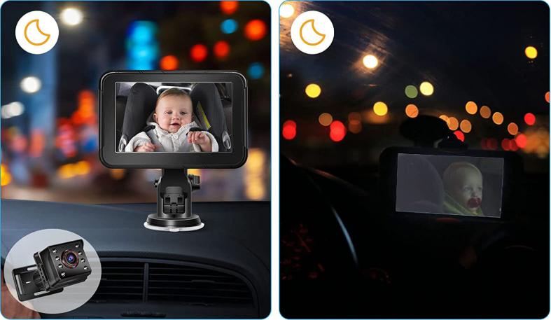 ✔️Ночное видение (8 шт. IRL): надежное изображение даже в темноте. Усовершенствованная функция ночного видения позволит вам следить за ребенком даже во время вождения в ночное время.