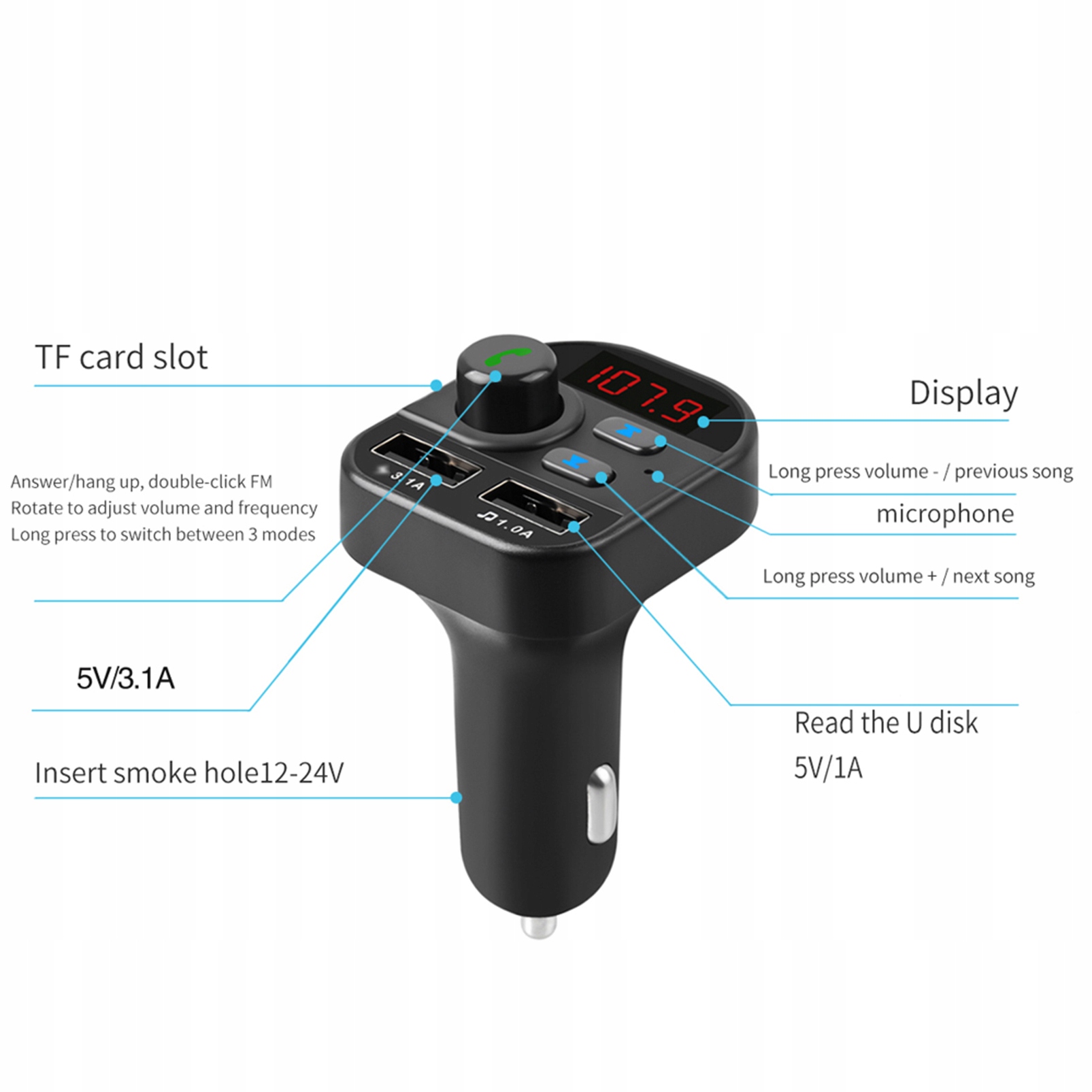 - Это автомобильный mp3-плеер с автомобильным комплектом BT. Встроенный чип декодирования MP3, который может передавать аудио/музыку с TF-карты/USB-диска и мобильных телефонов на стереосистему CAR FM; Благодаря функции потоковой передачи Bluetooth A2DP также предлагает функцию быстрой зарядки с двойным USB-портом для зарядки.