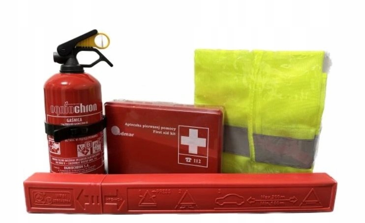 Набор автомобилей: огнетушитель, набор первой помощи, предупреждающий треугольник и отражающий жилет