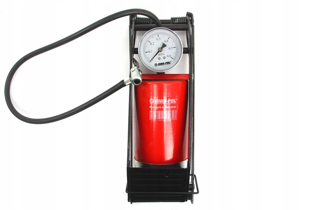 Ножной насос с манометром, предназначенный для накачивания автомобилей, велосипедов, спортивного и туристического инвентаря.
