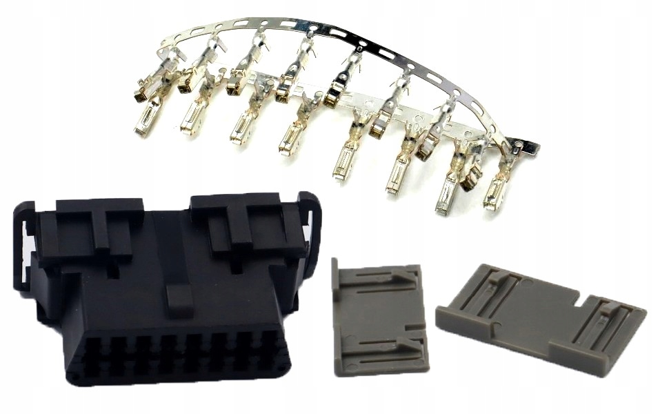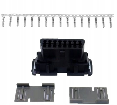 Разъем OBD2 с защелками. В комплект входят разъемы и серые защелки.