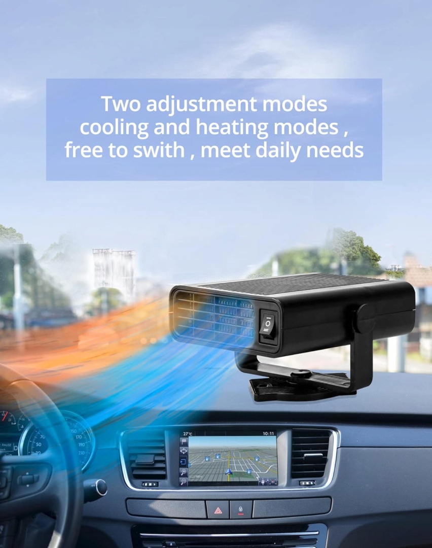 Совместимость: Этот автомобильный обогреватель подходит только для легковых автомобилей, таких как автомобили с напряжением 12 В и внедорожники, он удаляет запотевание зимой и сохраняет прохладу летом. Чтобы запустить его, подключите его к разъему прикуривателя в автомобиле.