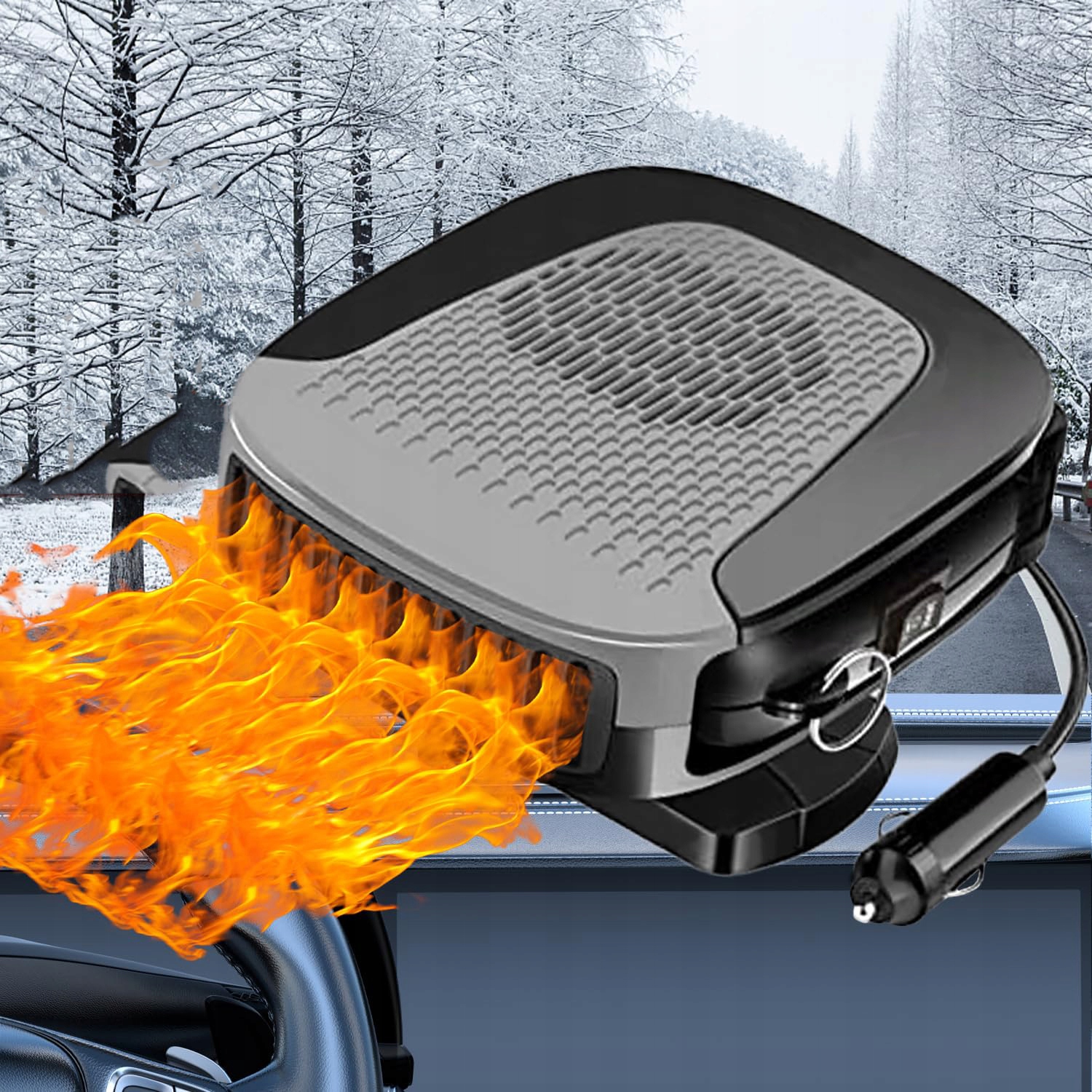 - Автомобильный тепловентилятор при включении нагревается и быстро нагревается, Быстро генерирует горячий воздух и ускоряет циркуляцию воздуха, он может быстро устранить туман или иней, нагревая лобовое стекло вашего автомобиля. Делает вашу поездку теплее и безопаснее.