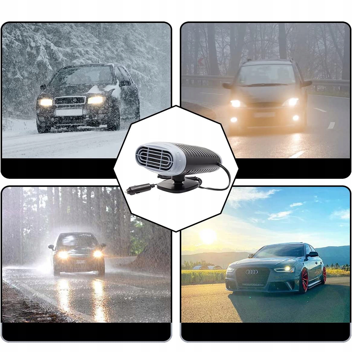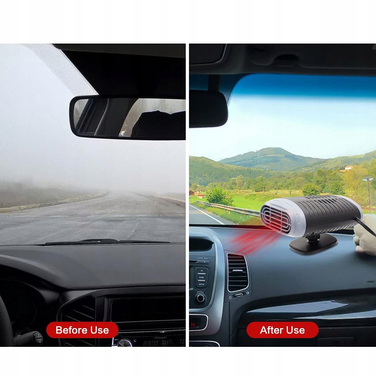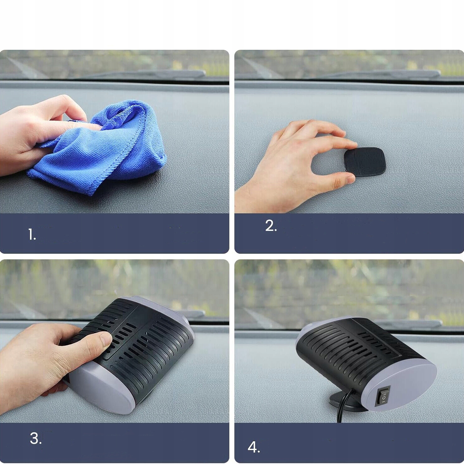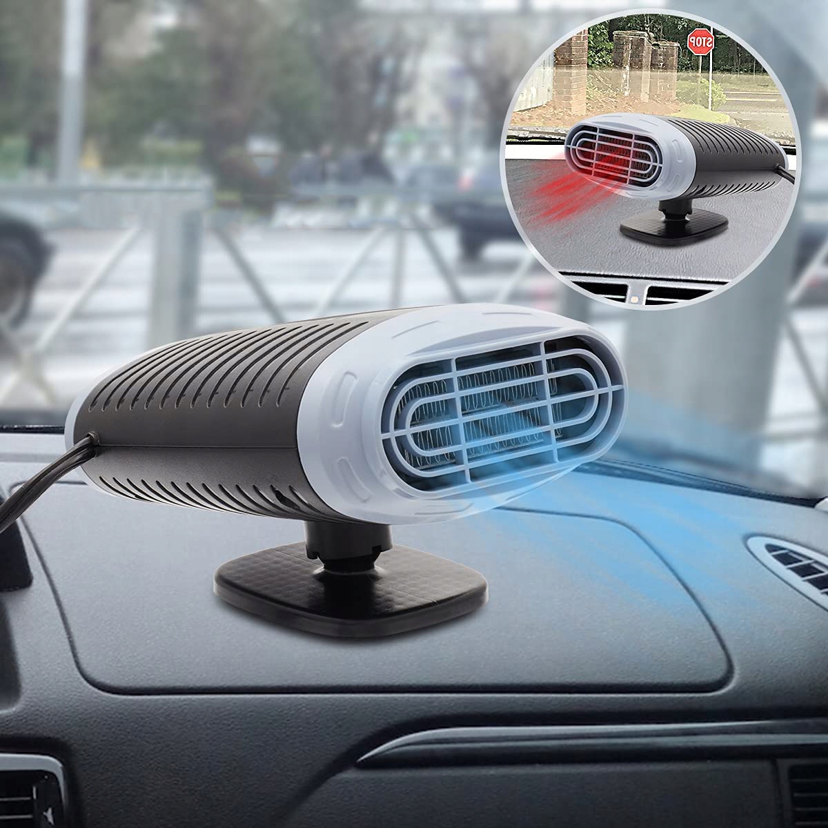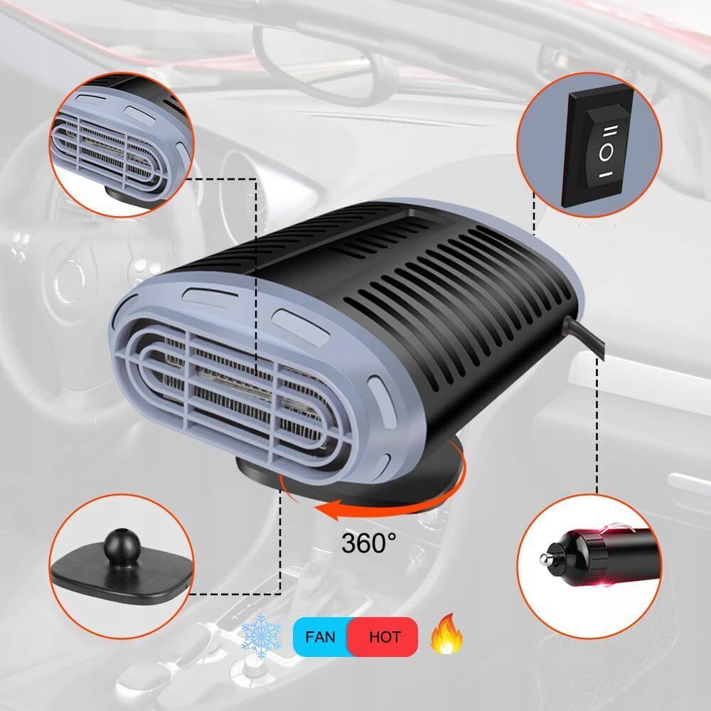 🚗 Easy installation: Our car heater is delivered with a strong double -sided self - Клейть, которая облегчает установку. Просто сначала очистите выбранную область, удалите защитную фольгу с двусторонней ленты и надежно прикрепите основание. Затем, без усилий, установите основное устройство на основе, и вы уже можете наслаждаться преимуществами уютного интерьера автомобиля. машина, в лагерях оттаивание. Подходит для всех автомобилей 12 В.
