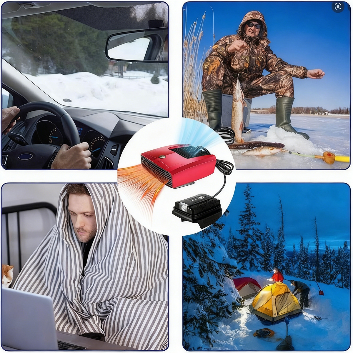 Основание радиатора можно поворачивать на 360°, а угол можно свободно регулировать, поэтому как пассажир, так и водитель могут установить желаемый поток холодного или теплого воздуха. Благодаря светодиодам устройство можно использовать в качестве практичного аварийного освещения в темных местах, подходит для поездок, кемпинга и т. д.