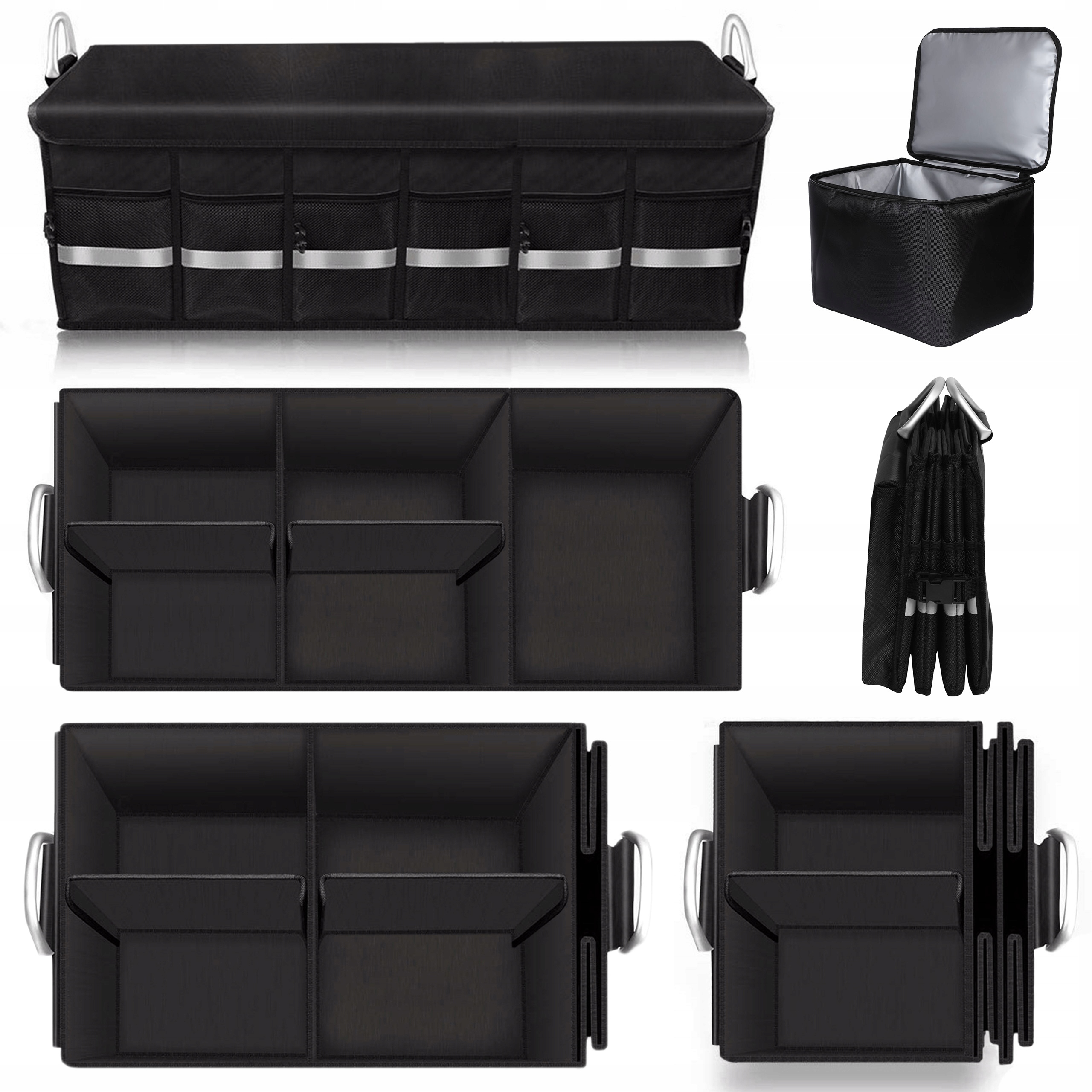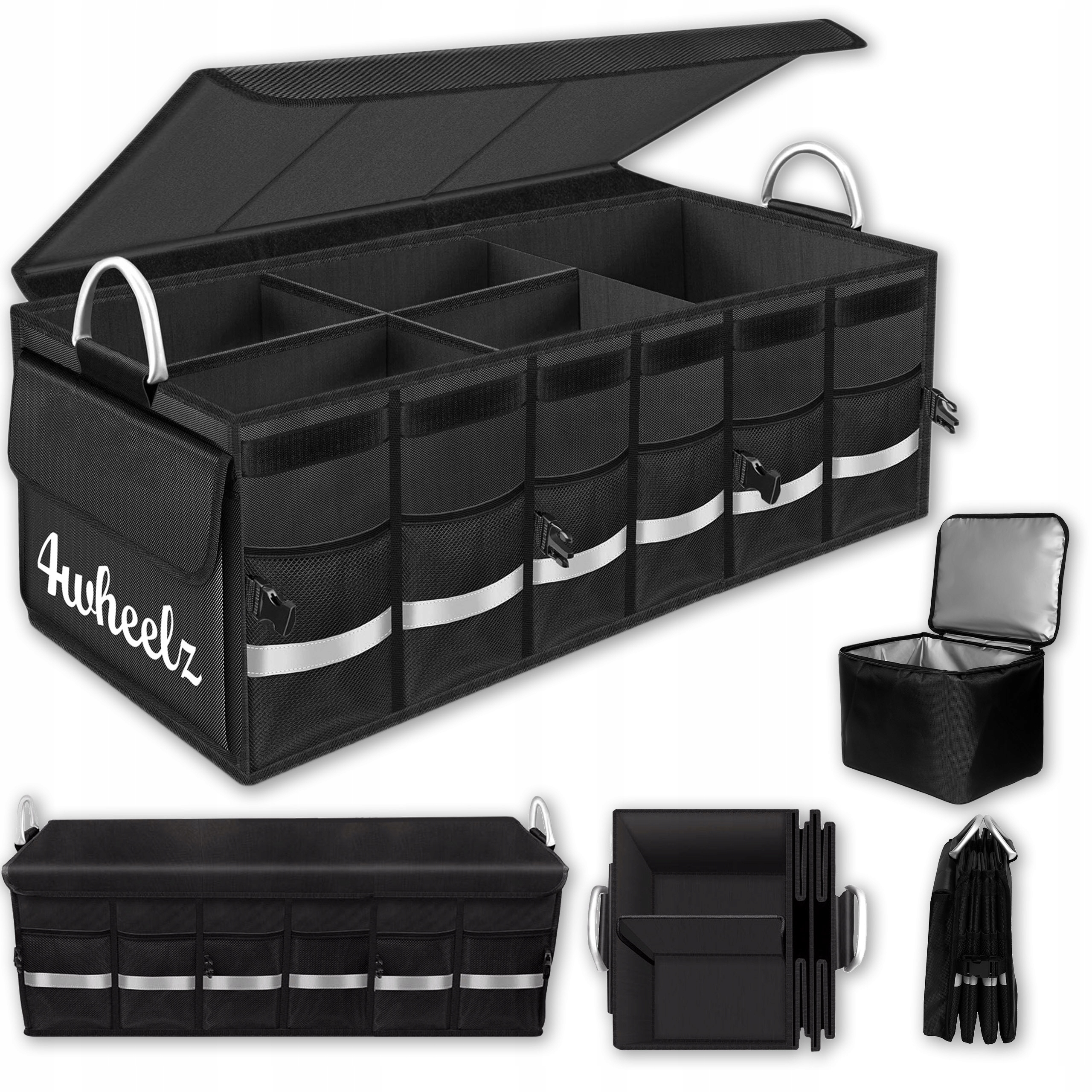 Essen — идеальный автомобильный органайзер, обеспечивающий порядок в каждом багажнике. Продуманная конструкция позволяет использовать его в соответствии с вашими потребностями. Органайзер можно использовать целиком, разделить на части или уменьшить на 2/3. Он прочно изготовлен из материалов высочайшего качества с внимание уделяется каждой детали. Благодаря материалу OXFORD 1680D он обладает повышенной прочностью и устойчивостью к повреждениям и является водонепроницаемым. Автомобильная сумка имеет прочные алюминиевые ручки, чехол на липучке, прочную строчку и нескользящие ножки, что делает ее устойчивой в багажнике. б>. Помимо вместительных внутренних отделений, он также имеет внешние сетчатые карманы и большой боковой карман на липучке. В целях безопасности сумка оснащена отражателями. Модель после упаковки принимает форму небольшого чемодана и занимает очень мало места. В комплект также входит термосумка емкостью 25 литров. Органайзер Essen — это очень вместительный и надежный автомобильный органайзер, который позволит вам систематизировать все вещи в автомобиле.