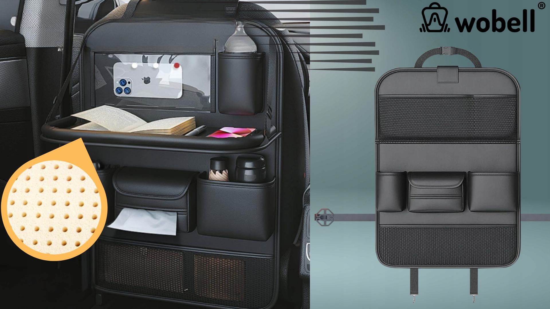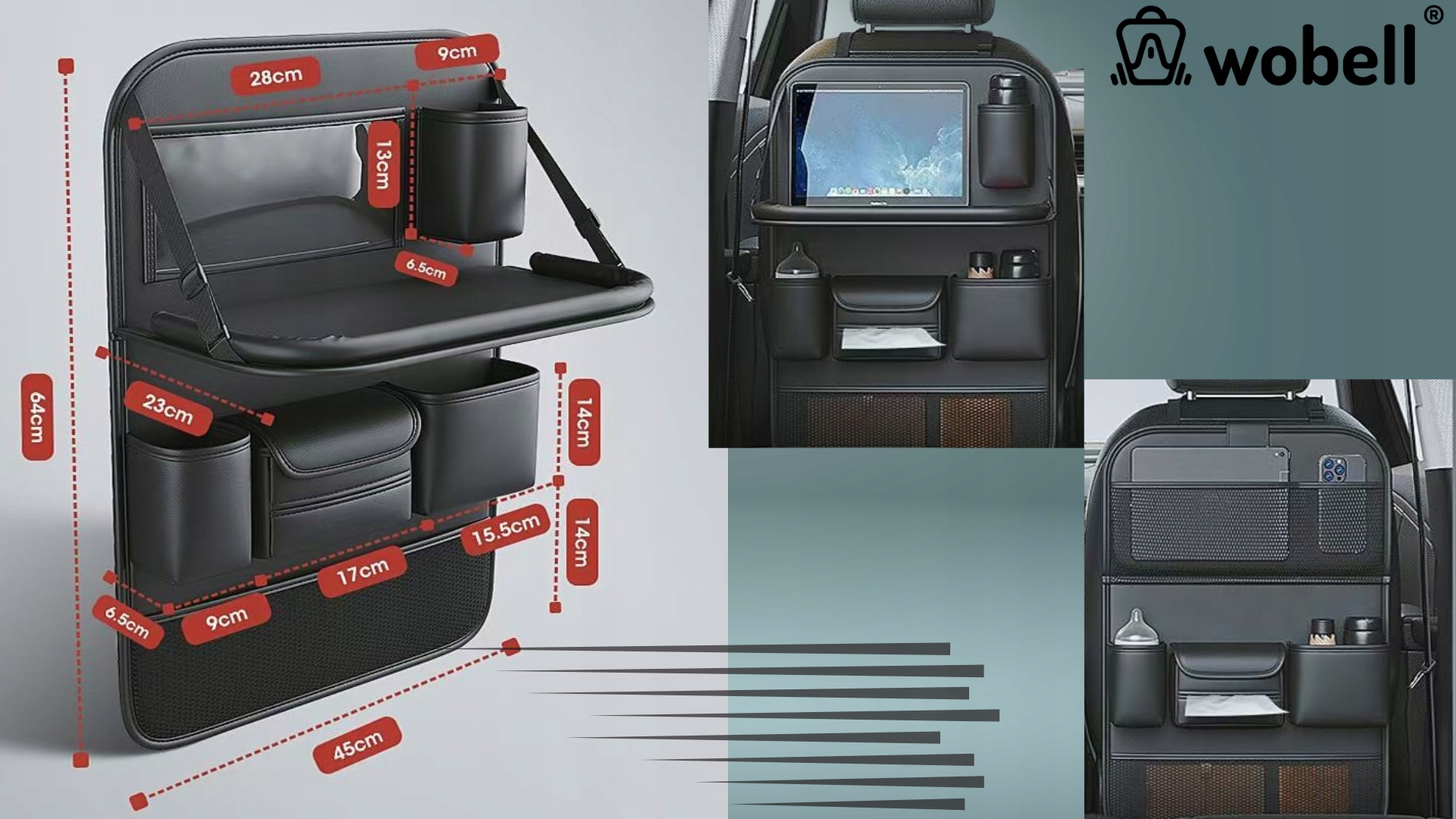 ✅Опрятность и организация - Большое количество карманов позволит разместить все необходимые аксессуары в вашем автомобиле. Органайзер поможет вам избежать беспорядка и проблем с поиском нужных вещей. Автомобильный органайзер на переднее сиденье имеет целых 9 карманов и складной столик.