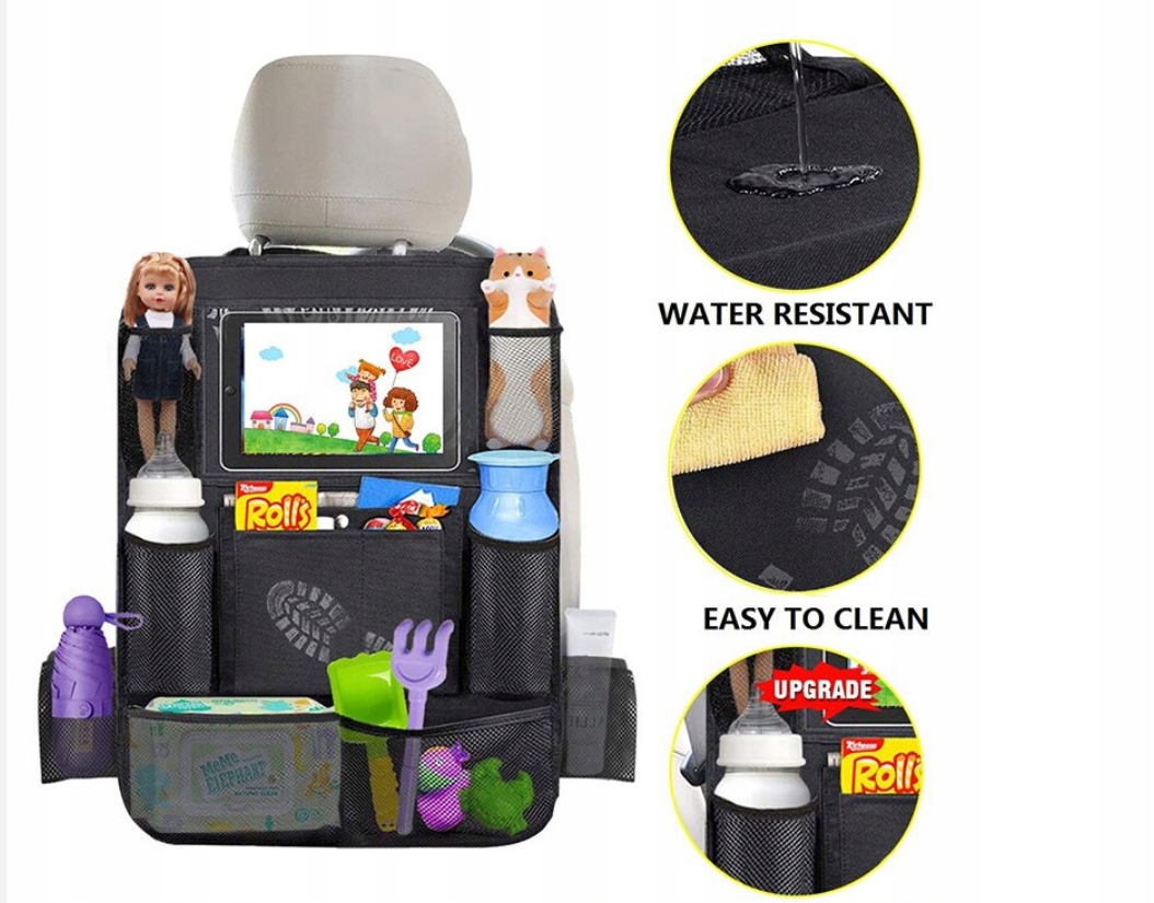 Благодаря прочным лямкам и пластиковым застежкам вы можете быть уверены, что все, что вы положите в органайзер, останется там во время поездки. Подходит для большинства автокресел. Органайзер размещается за сиденьем водителя или пассажира.