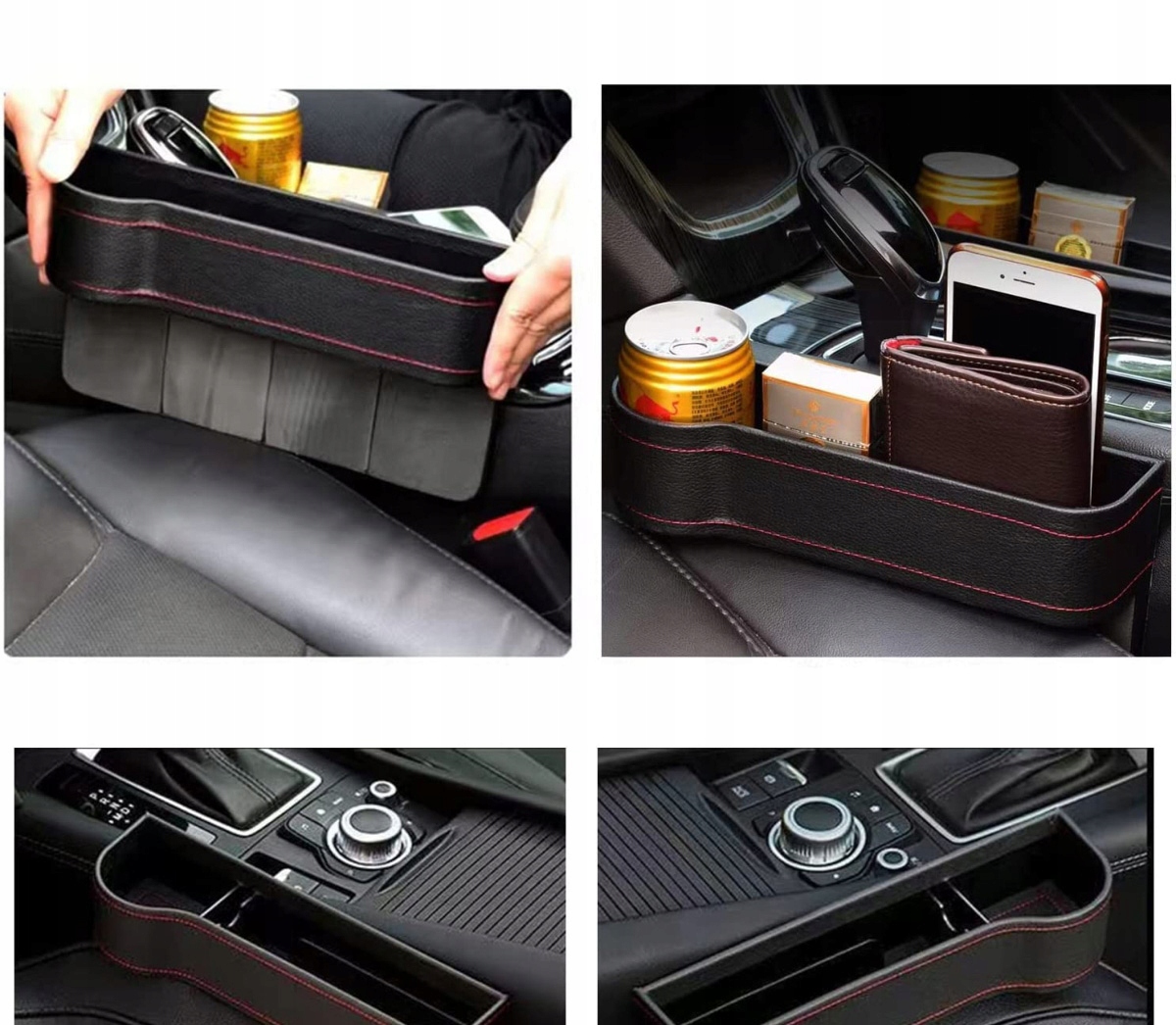 Современный органайзер и контейнер для напитков в автомобиле, размещенный между сиденьем и центральной панелью, помогает поддерживать порядок во время путешествия.