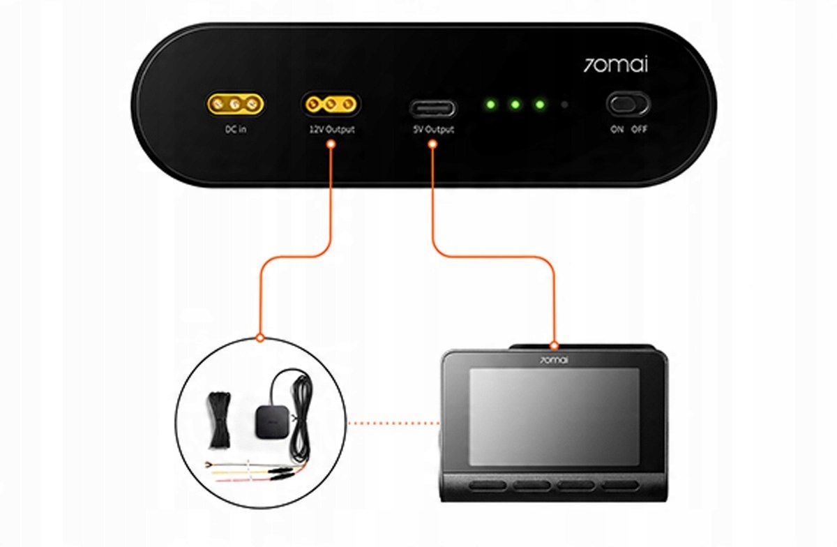 PowerBank 70MAI 7500MAH 12V для питания автомобильных камер в режиме парковки - для коробки предохранителей h2> - обеспечивает длительное время наблюдения за парковкой после выключения двигателя li>