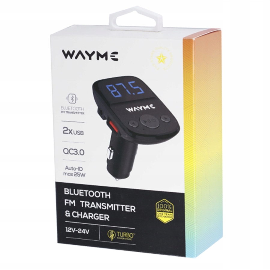 Автомобильный передатчик Wayme 12/24V с USB QC3.0 + Auto-ID Woltomierz