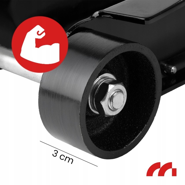 Подъемник оснащен поворотными,несущимипередними колесами, что позволяет легко маневрировать. Эти колеса гарантируют плавное движение домкрата, что позволяет точно позиционировать его в нужном положении под автомобилем. Устойчивость при подъеме и опускании автомобиля — ключевая функция, повышающая безопасность труда.