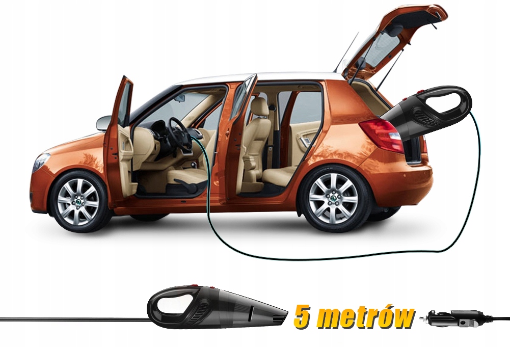 Длинный кабель 500 см — пятиметровый кабель гарантирует, что вы легко сможете почистить весь автомобиль пылесосом.