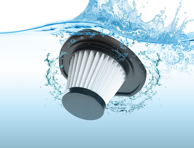 В пылесосе используется технология двойной фильтрации, и что это значит? Расположенный внутри НЕРА-фильтр предотвращает вынос мельчайшей пыли наружу, обеззараживает проходящий через него воздух, а также дополнительно защищает двигатель устройства от повреждений. Его легко снять и промыть под проточной водой, что позволяет использовать его многократно. Благодаря использованию фильтра пылесос не теряет мощности и мощность всасывания остается постоянной.