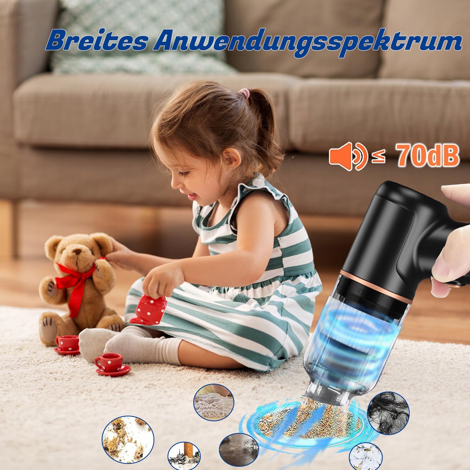 Оснащен сверхмощным двигателем для эффективной ежедневной уборки — идеально подходит для сбора пыли, волос и мусора с сидений, пола, клавиатуры и т. д.
