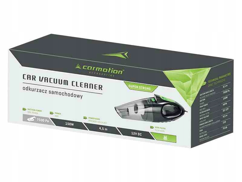 Автомобильный пылесос 12В 150Вт / 7500Па, со светодиодным фонариком