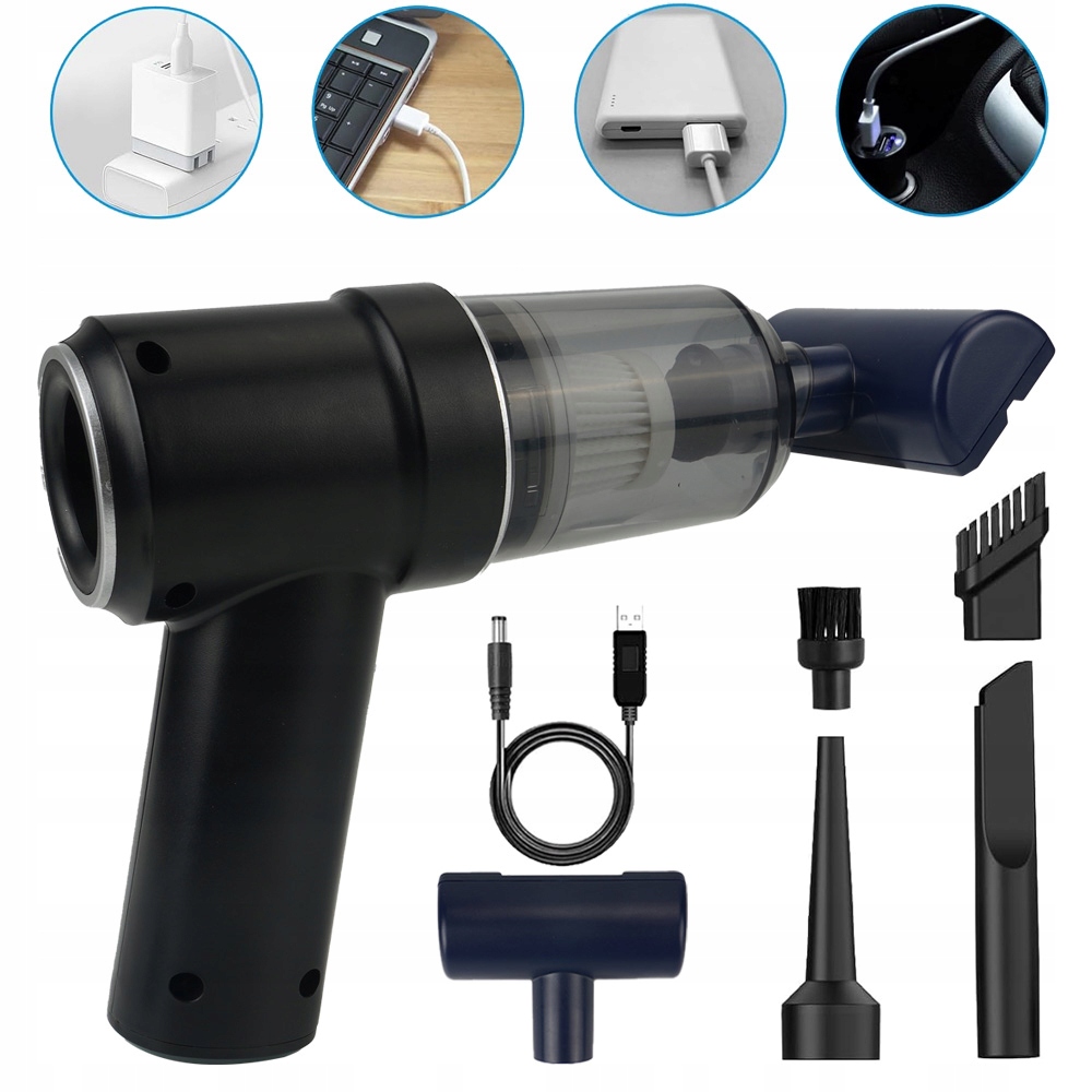 - Мини-пылесос прост в использовании, а его сложная насадка удалит пыль из каждого уголка и щели.