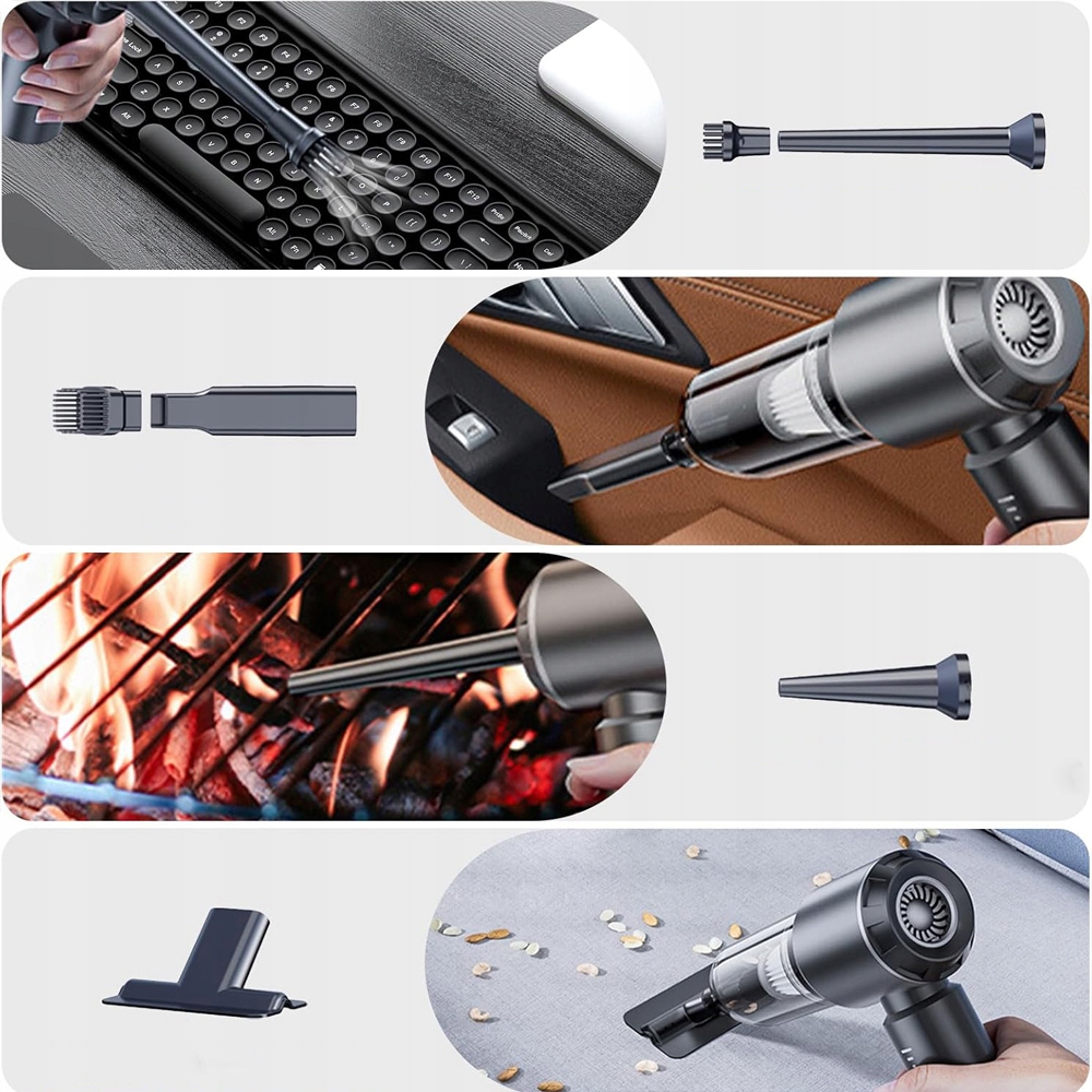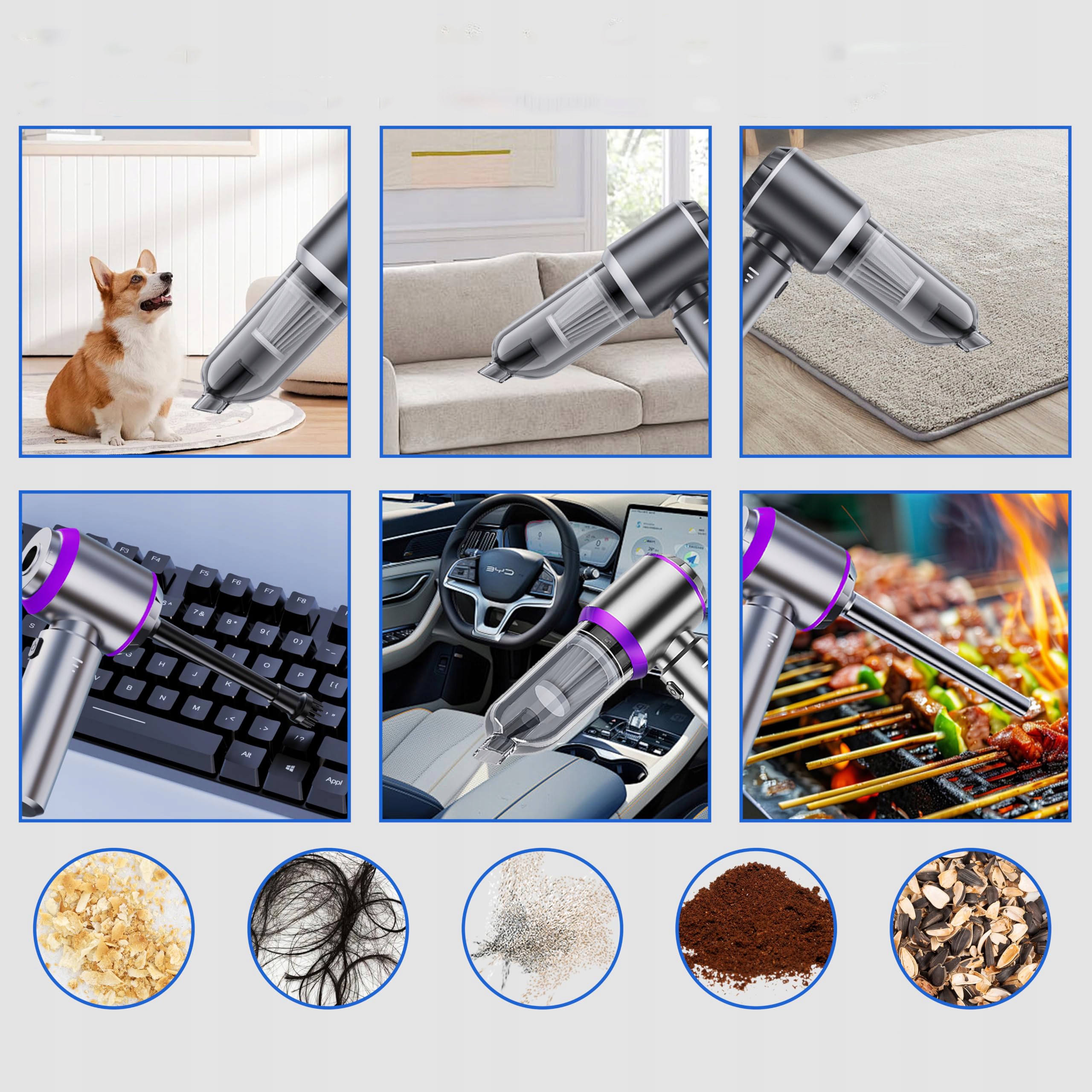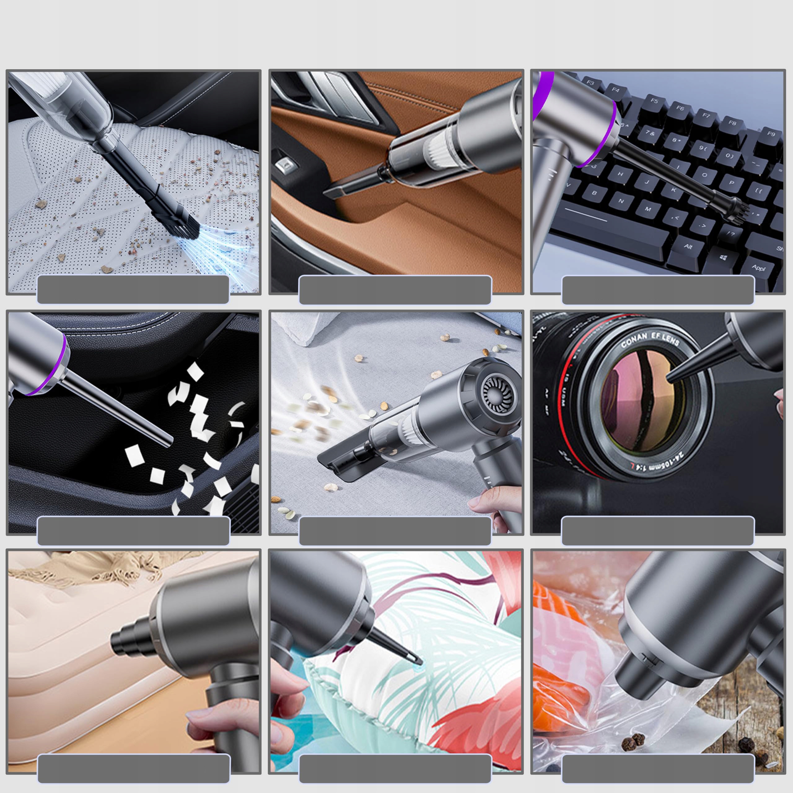 - ✅【9 аксессуаров для решения всех ваших проблем с гигиеной】: Беспроводной ручной пылесос может всасывать мусор, грязь и волосы, подходит для автомобилей, полов, ковров и диванов. Беспроводной пылесос способен удалить пыль и песок из труднодоступных мест, таких как зазоры между сиденьями автомобиля, вентиляционные отверстия, углы комнат, пространства под диванами, компьютерами, клавиатурами и другие труднодоступные места. Его также можно использовать для надувания и сдувания, надувания плавательных кругов и воздушных шаров, а также для вакуумной упаковки пищевых пакетов.