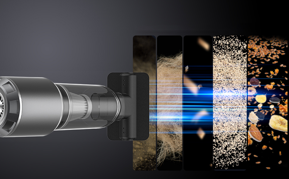 - ✅【Мощное всасывание】: Этот ручной пылесос оснащен мощным бесщеточным двигателем с максимальной скоростью 80000 об/мин, который может генерировать мощный поток воздуха для тщательной уборки. Беспроводной ручной пылесос легко удаляет пыль, остатки пищи, волосы и частицы домашних животных, сохраняя чистоту вашего дома и автомобиля.