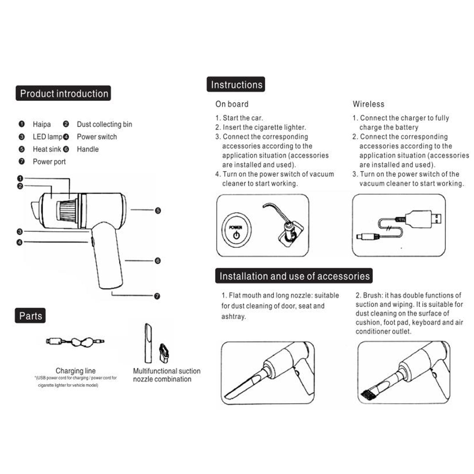 p>Беспроводная ручная очиститель пылесоса подходит для ежедневной уборки, в этом доме, офисе, транспортном средстве и повседневной пыли, волосах животных, отходов бумаги.
