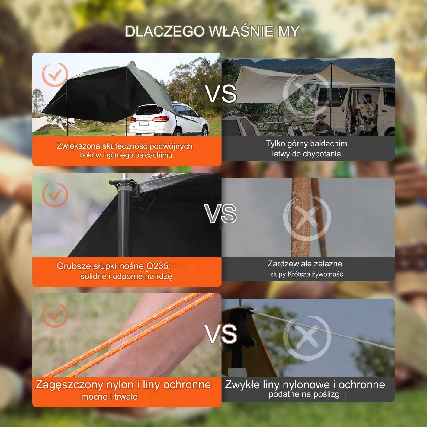 Познакомьтесь с Автомобильным навесом с размерами 3 x 2,1 м! Водонепроницаемый, ветрозащитный и с защитой UV50+будет размещать 4-6 человек, предлагая тень и покрытие во время кемпинга, пикников или путешествий для каждого автомобиля.
