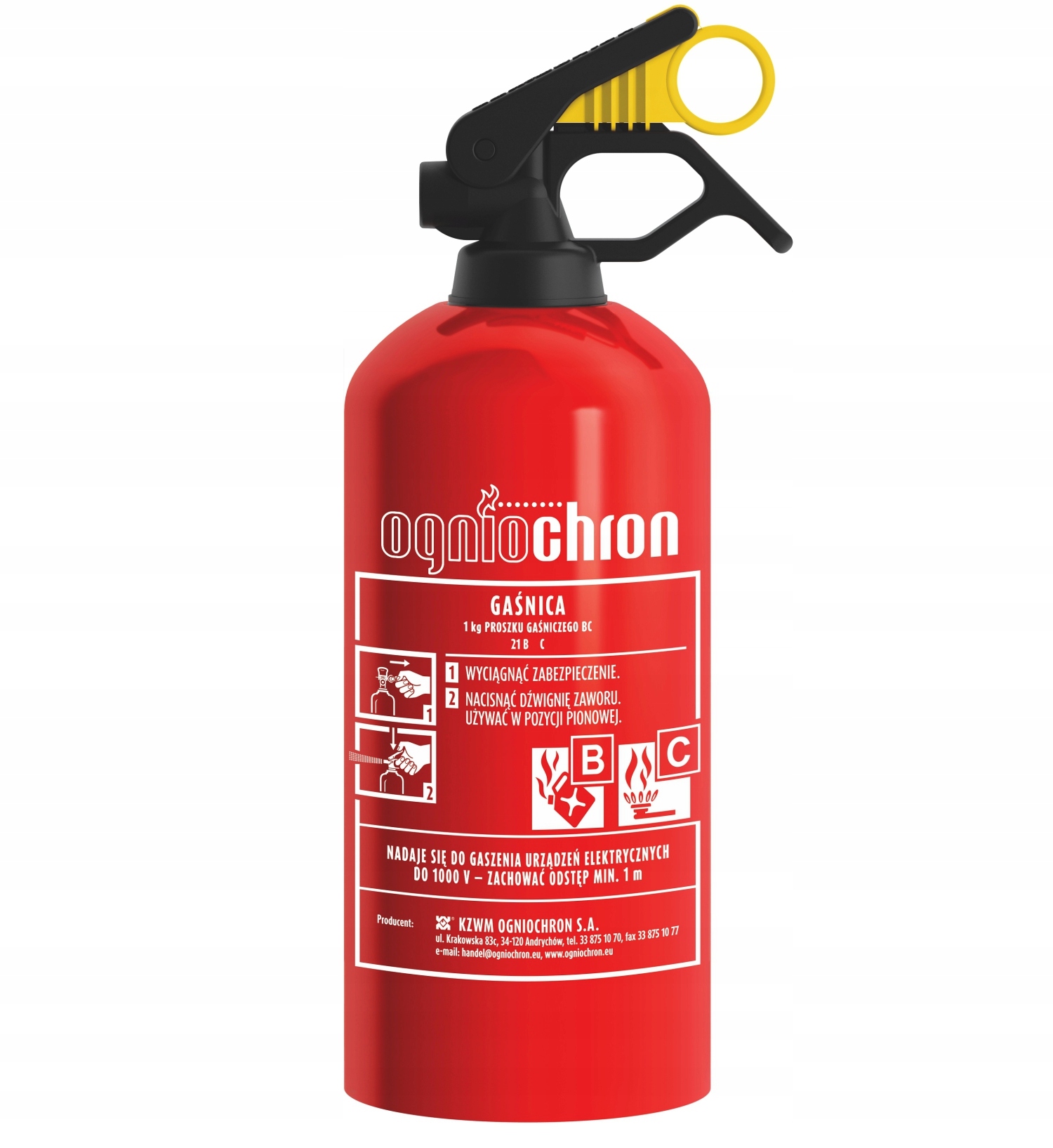 - Вес огнетушащего вещества: 1 кг