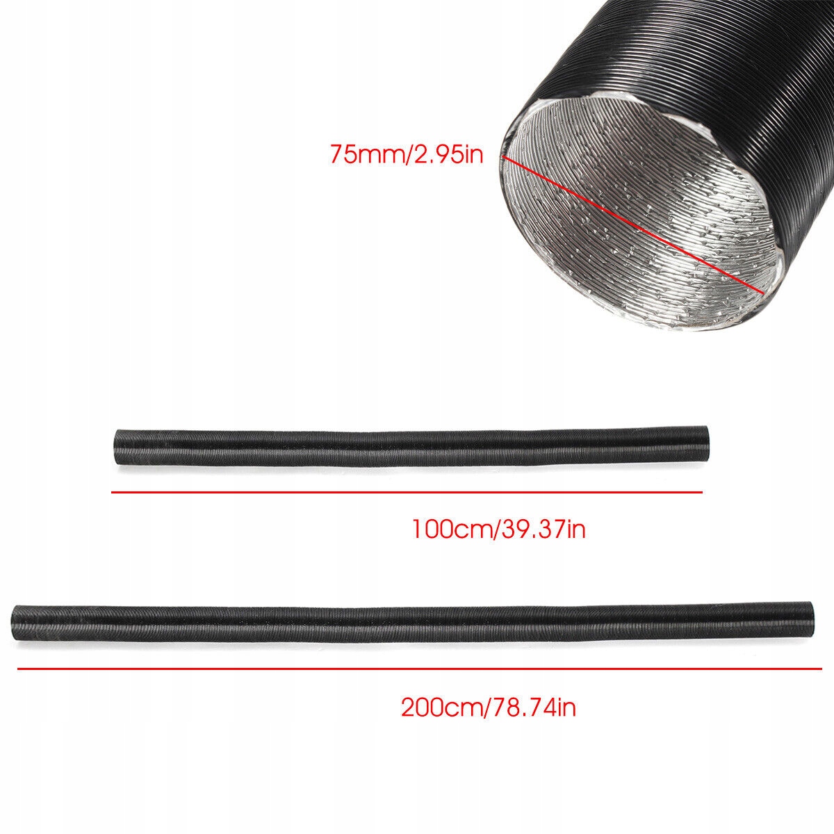 ✅Диаметр 75 мм, подходит для любого выхлопного шланга диаметром 60 мм. Длина составляет 100 см и может быть увеличена до 200 см.