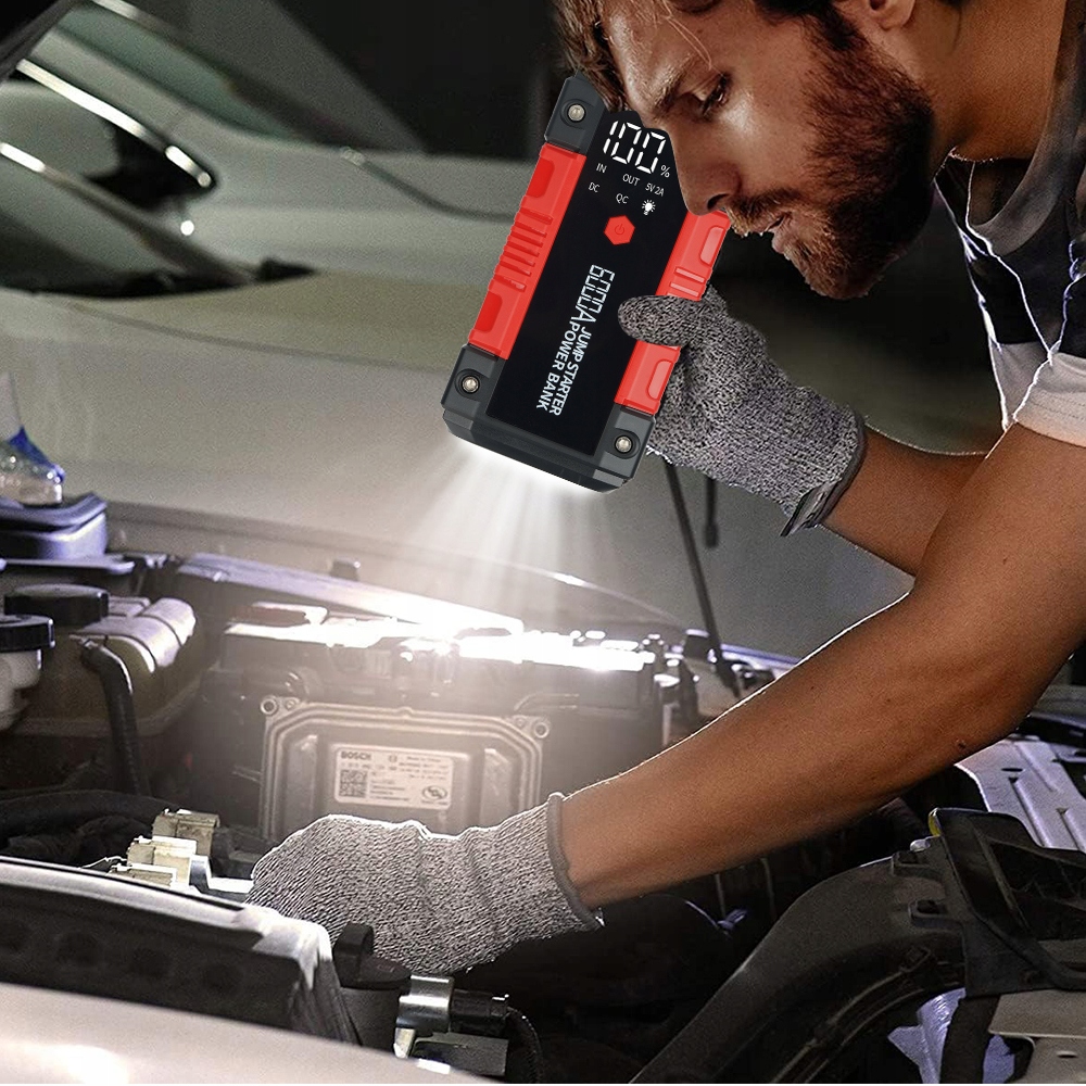 Автомобильный стартер обеспечивает пиковый ток до 6000 А, запускает все транспортные средства с напряжением 12 В, такие как мотоциклы, внедорожные велосипеды, UTV, газонокосилки, снегоходы, грузовики, лодки, кемперы, тракторы и т. д. (до 10,0 л бензина или 10,0 л масляного привода). После полной зарядки его можно использовать около 40 раз. Мощный пуск обеспечивает плавный запуск даже при экстремальных температурах от -20°C до 60°C.