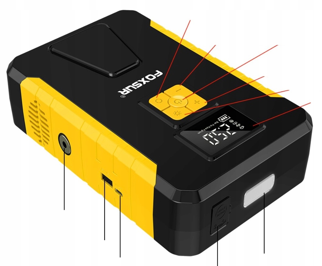 Благодаря функциям внешнего аккумулятора и компрессора, В FOXSUR FJS-950 есть все, что нужно для безопасного и комфортного вождения.